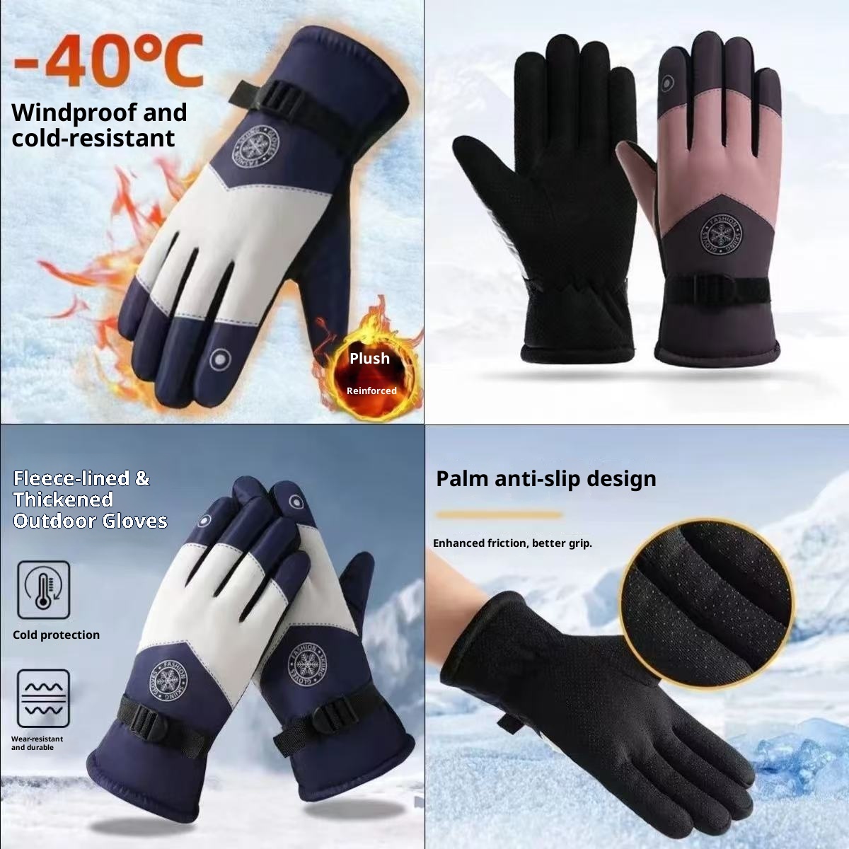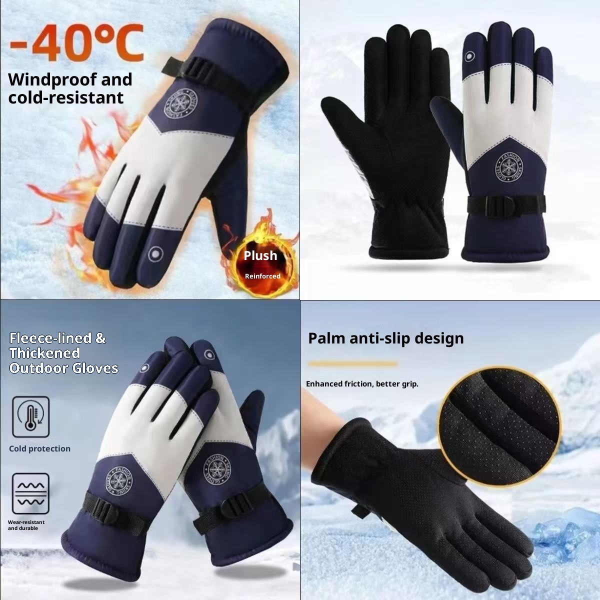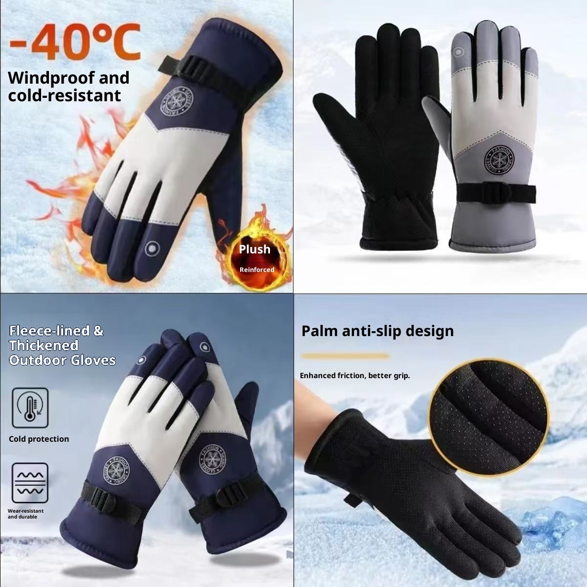 001 Herren Winter-Fahrradhandschuhe für E-Bikes, winddicht, kältebeständig, fleecegefüttert, dick gefüttert, warm, Touchscreen-fähig, aus Baumwolle