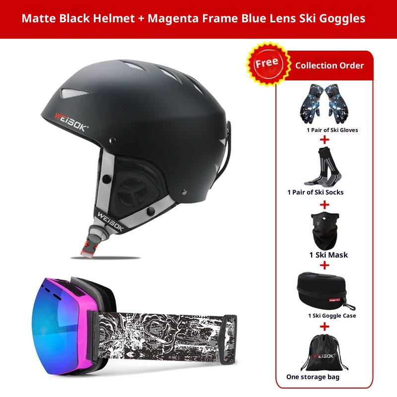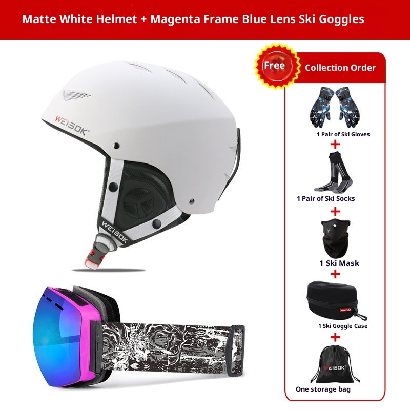 001 Neuer Erwachsenenhelm für Damen und Herren, professionelle Kappe mit integrierter Skibrille, komplettes Ski- und Snowboard-Set