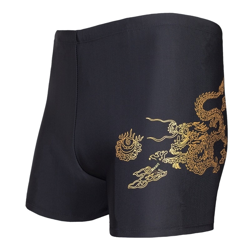 001 Polyester-Badehose für Erwachsene, Übergröße L, Herren, Drachen- und Wolfsmotiv, hoher Bund, schnelltrocknend, bedruckt