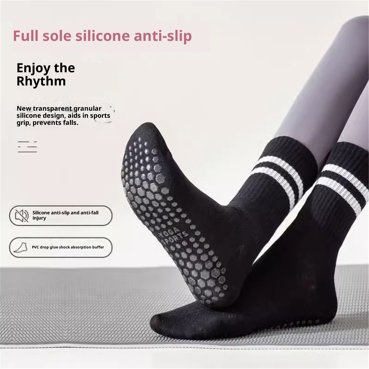 001 Professionelle Yoga-Socken für Damen, wadenlang, Frühling und Sommer, rutschfest, Pilates, Anfänger, für drinnen, speziell für den Boden