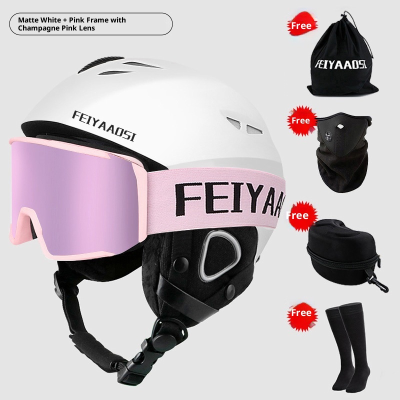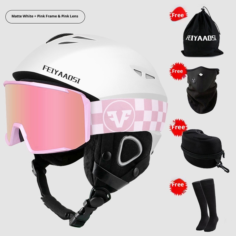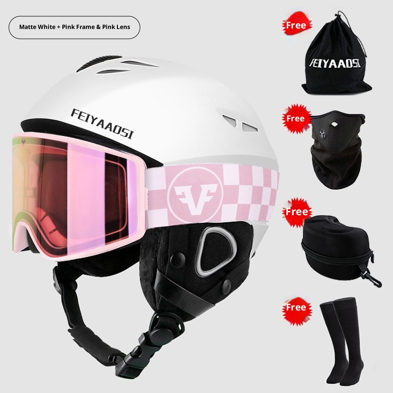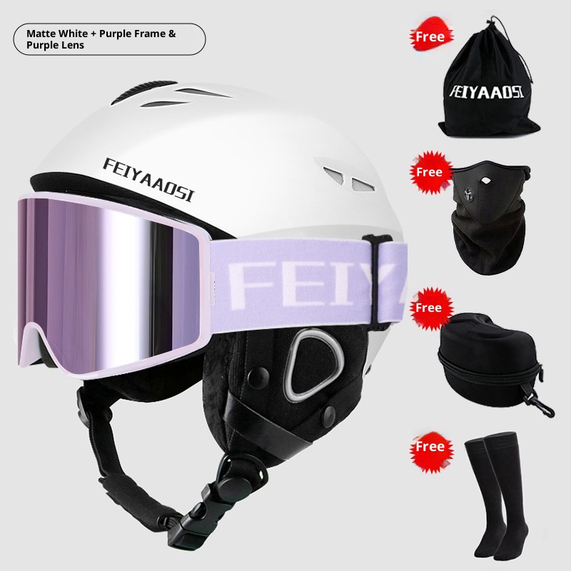 001 Yutian Snowboardhelm für Damen, Schneehelm für Herren, professionelle Kinder-Skibrille, integrierte Skimütze