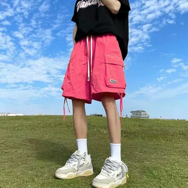 Product Source Category:In Stock,Brand:other,Style:British Style,Bargain Category:Youth Fashion 18-24 Years Old,Design:Multi-pocket Pants,Pants Style:Loose Fit,The length of the pants:Five-point Shorts,Waist Shape:Mid-rise,Does it have a belt?:No waistband,Pants Fly:Tie Closure,Thickness:Lightweight,Pattern:Solid Color,Error margin:3,Suitable for the season:Summer,Is it in stock?:yes,Inventory Type:Complete order,Suitable for everyone:Teenagers,Year/Season of Release:Summer 2024,Fabric Name:Synthetic Blend Fabric,Main fabric composition:Polyester Fiber Dacron,Content of the main fabric components:90,Applicable Scenarios:Everyday,Pants Hem Style:Straight-leg,Craftsmanship:Non-iron treatment,Design details:Multi-pocket,Elasticity:Non-elastic,Fabric:other,Color:Green, yellow, pink,Size:M,L,XL,2XL,3XL,Is it exclusively for cross-border export supply?:No,Category:Cargo Casual Pants,Original Design Source:No,Is there a quality inspection report?:No,Quality Inspection Report Number:other,Material function:Durable, wrinkle-free, high color fastness,Suitable age group:adult,Applicable Gender:Male,Product Category:Casual Pants