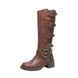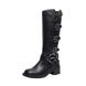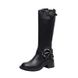 2023 Autumn Belt Buckle Chunky Heel Martin Boots Over-the-Knee Plush British Style Plus Size Women's Boots 41-43 Wide for Plus Size Women