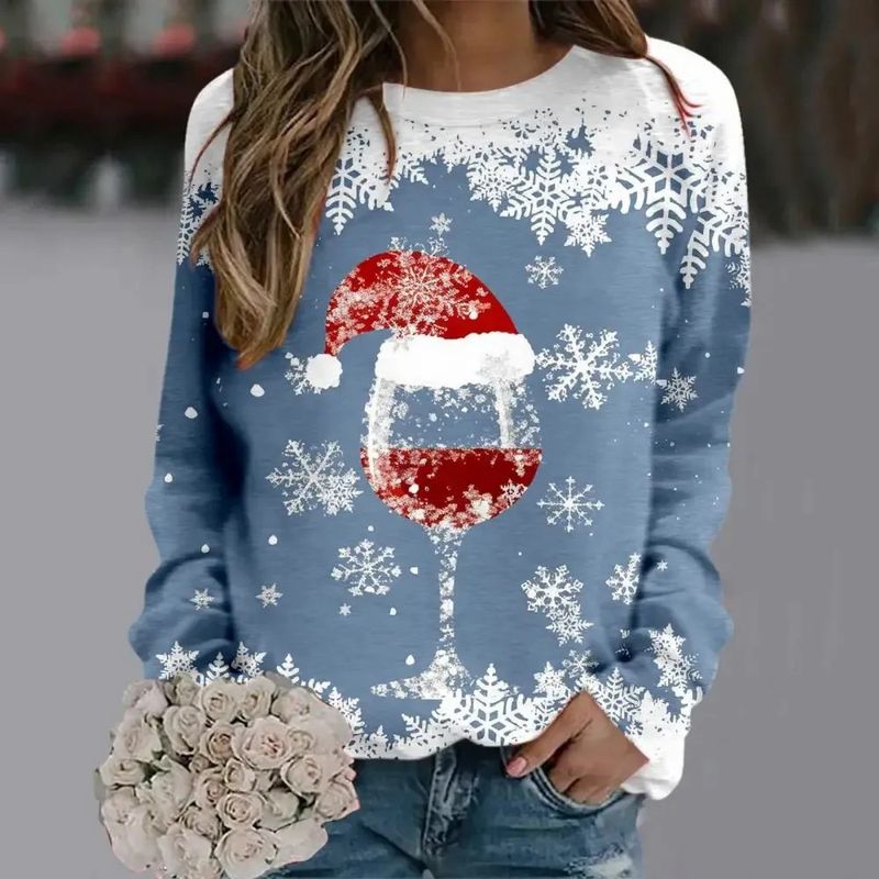 2023 Autumn Fashion Women's Round Neck Sweatshirt 3D Christmas Series Digital Print Pullover Long Sleeve Sweatshirt