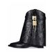 2023 New Pointed Toe Wedge Embossed Leather Mid-Calf Boots with Metal Buckle, Special Large Size Women's Shoes