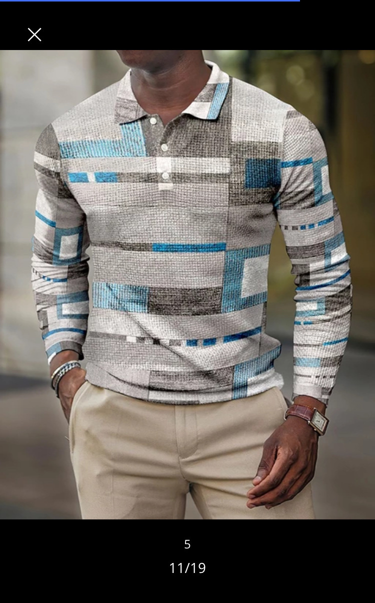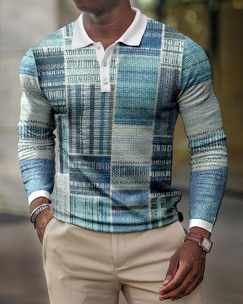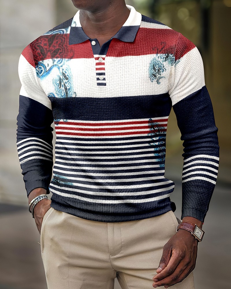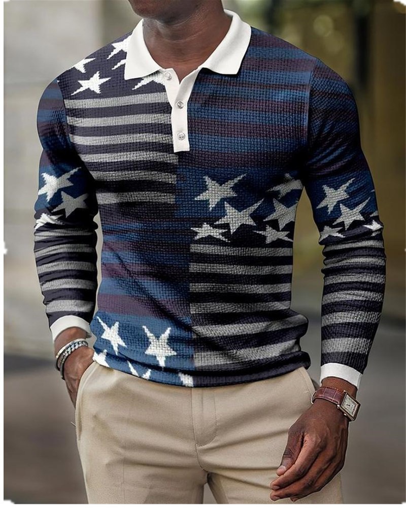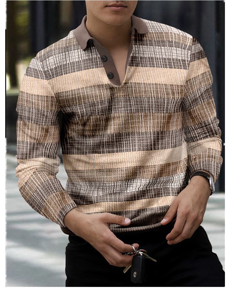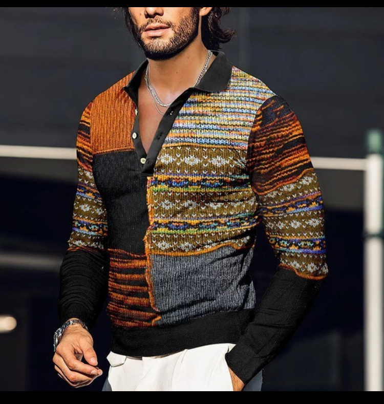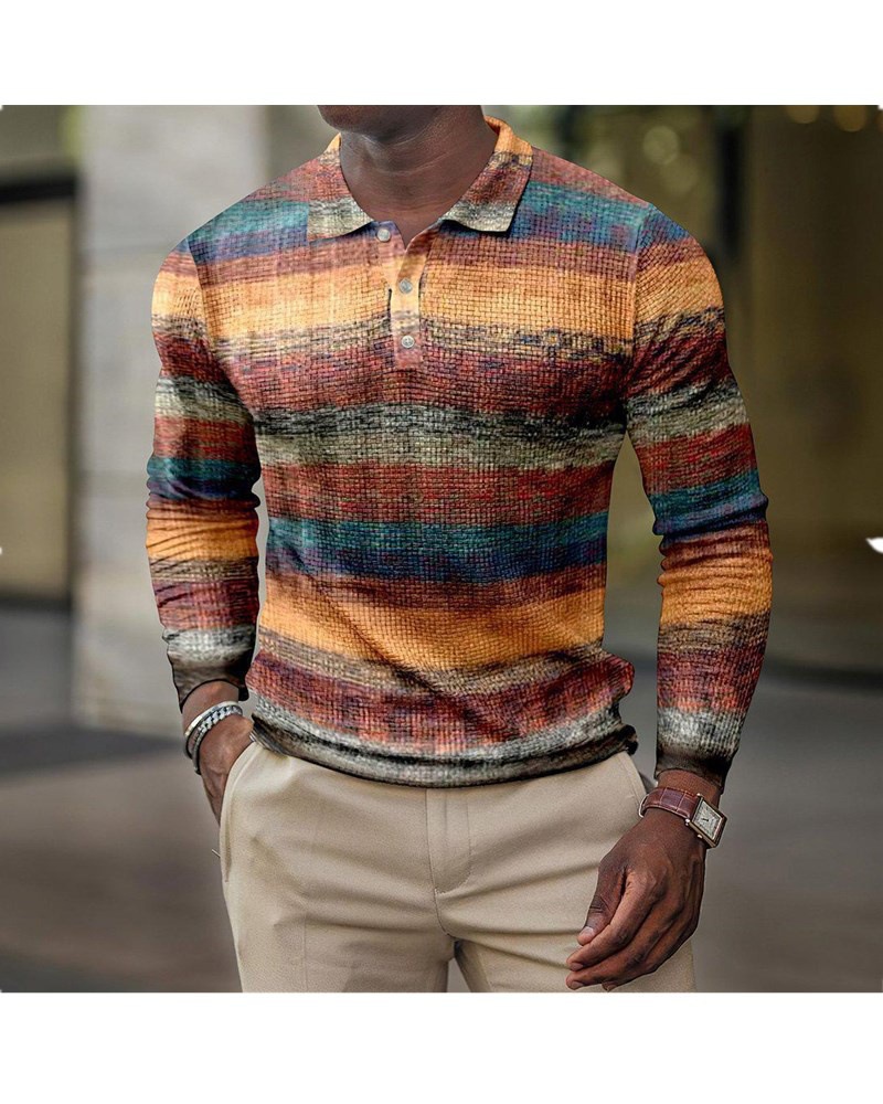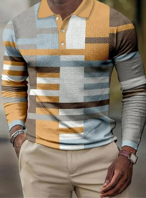 2023 Frühjahr Neues 3D-bedrucktes lässiges langärmeliges Poloshirt für Herren