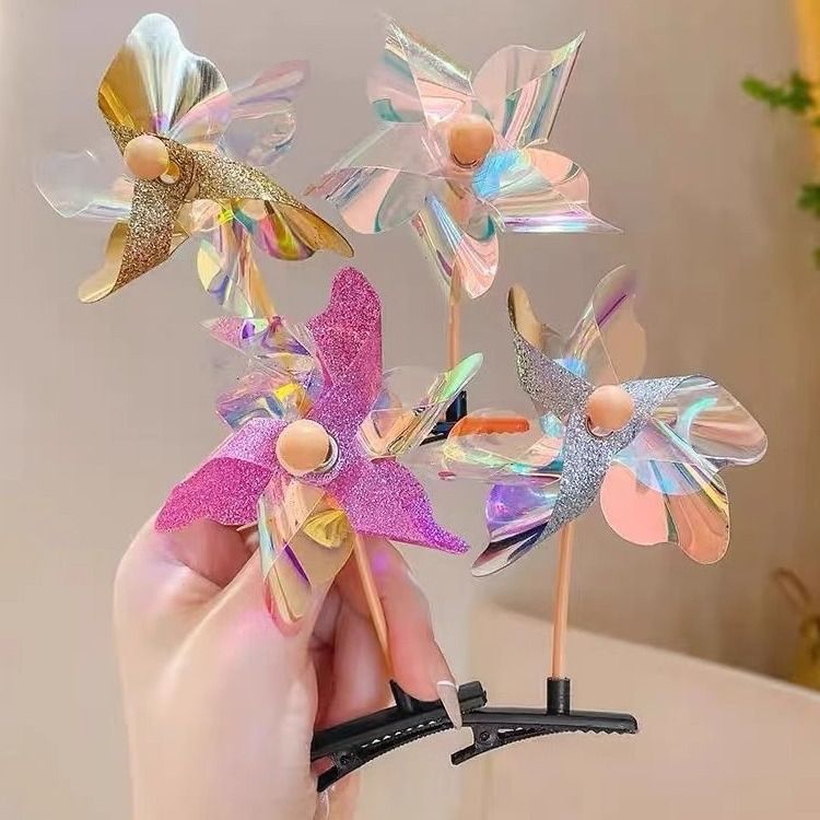 Windmill hair clips that move on Children's Day, creative and cute headwear, hair clips for girls, colorful accessories clips