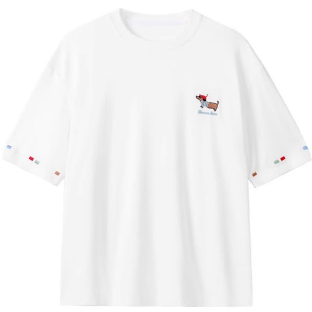 2025 Summer New White Base Large Size Dog Embroidery Short Sleeve T Loose T-shirt Cool Breathable Top for Men