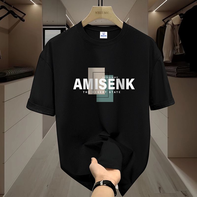2025 Summer New Men's Printed Short Sleeve T-Shirt Breathable Sweat-Absorbing Crew Neck Casual Versatile Base Shirt Ins