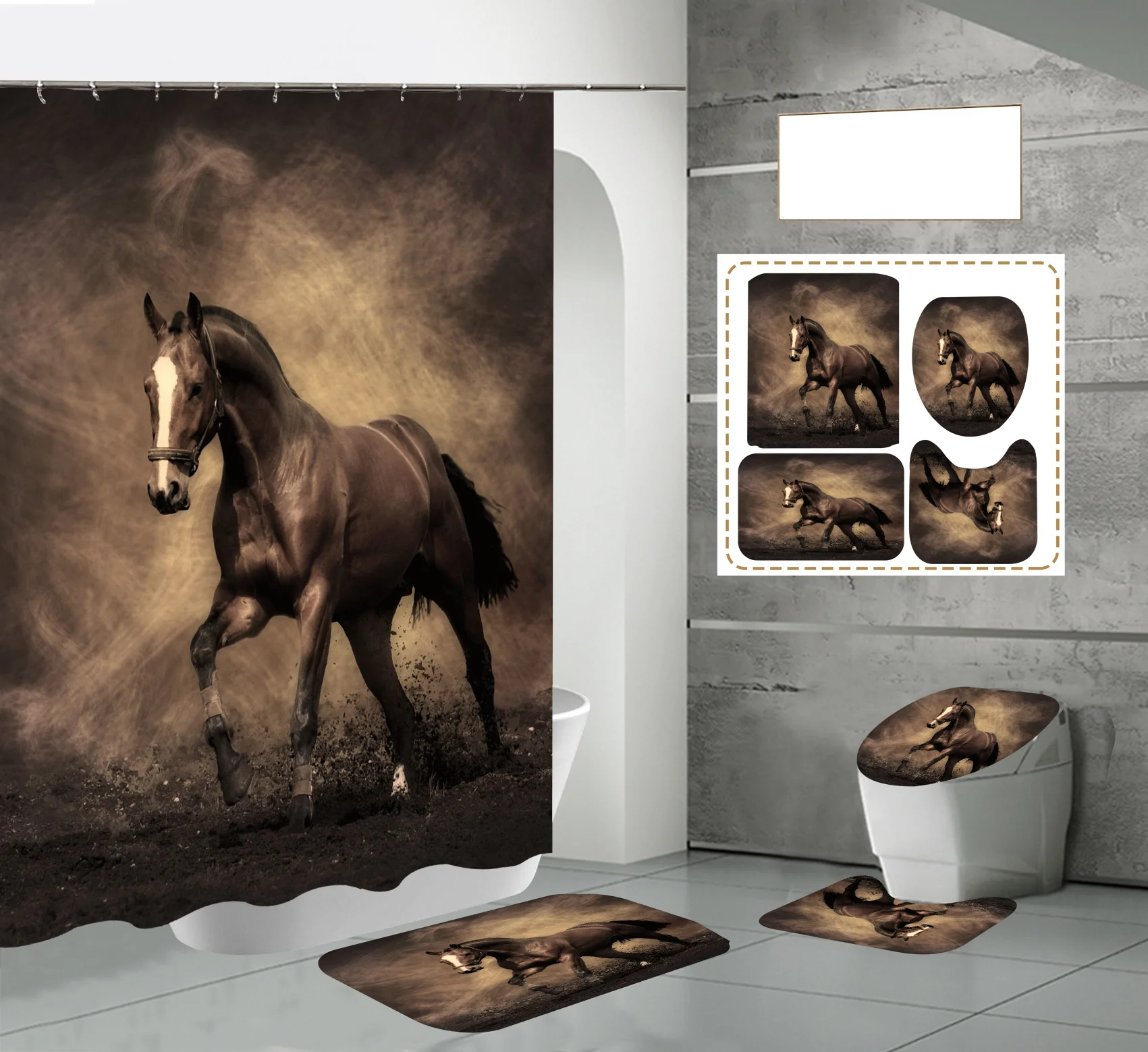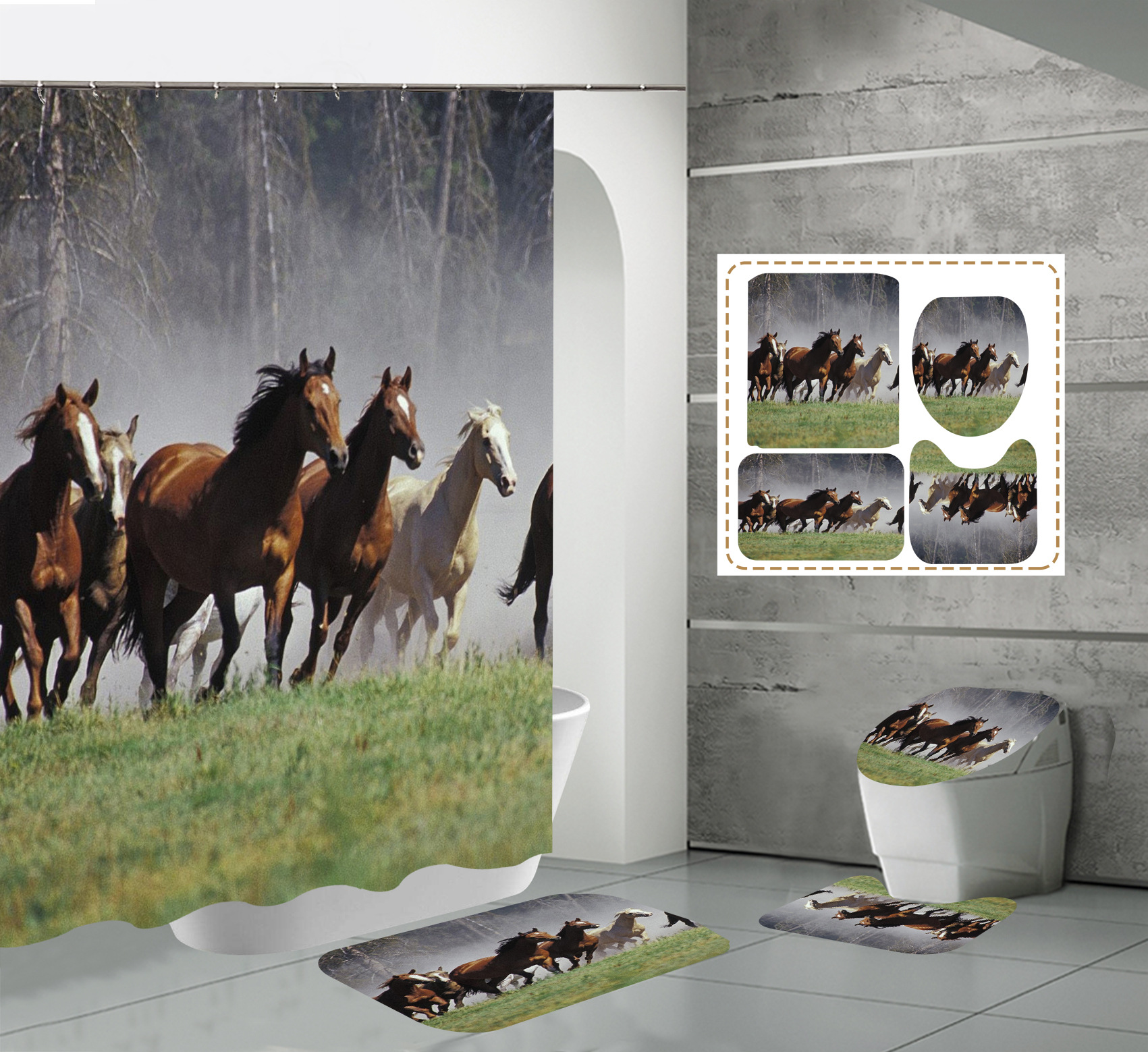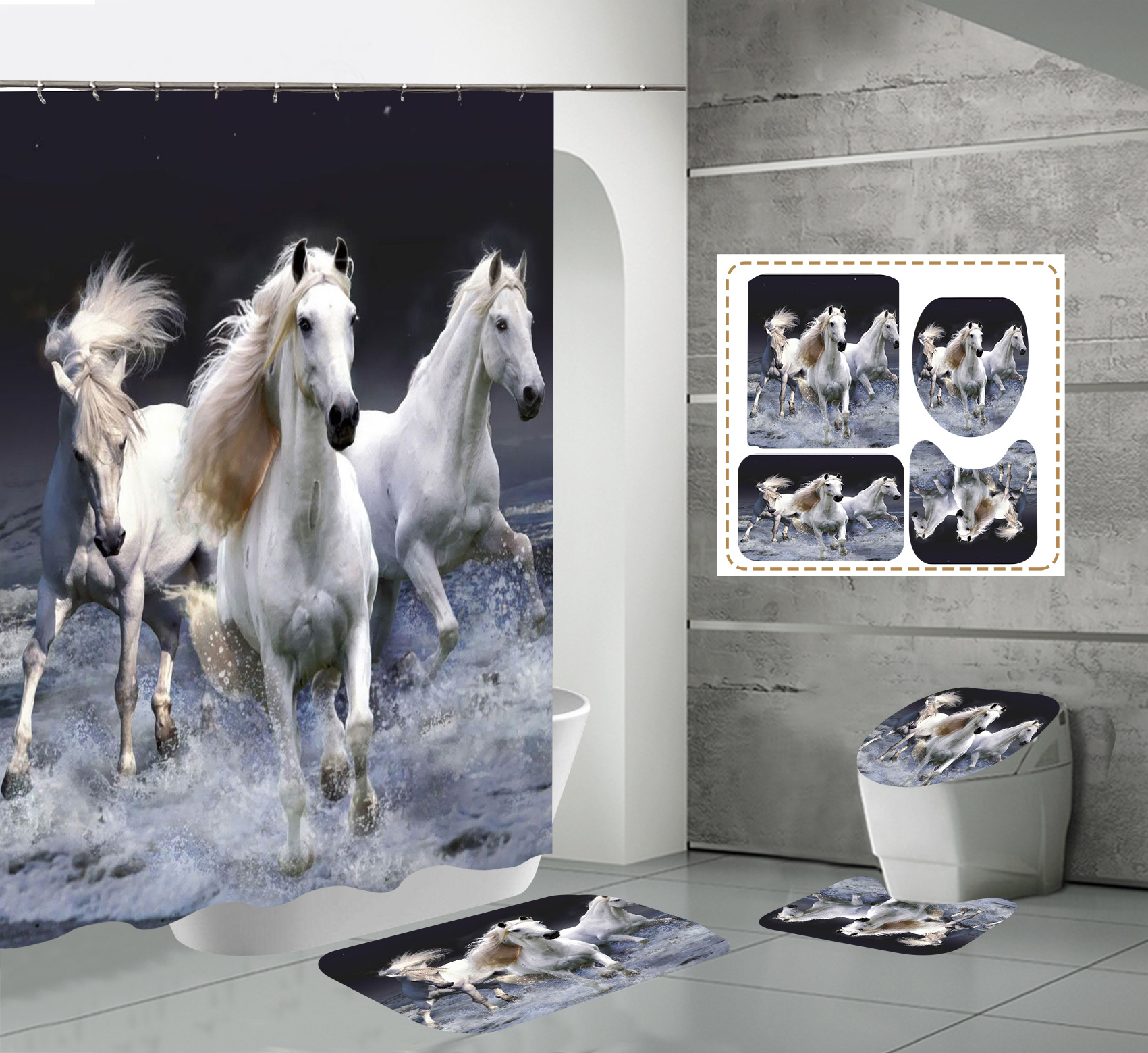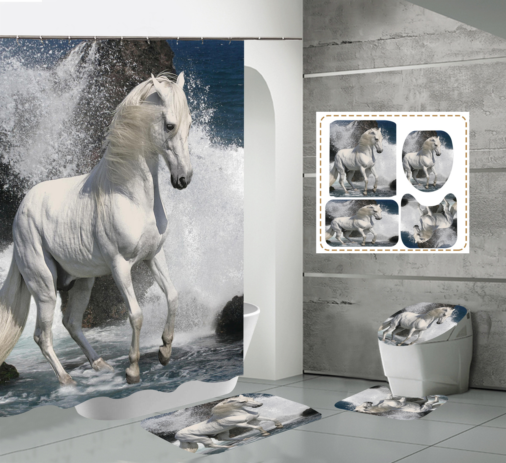 3D-HD-Digitaldruck, wasserdichter Polyester-Tier-Pferd-Duschvorhang