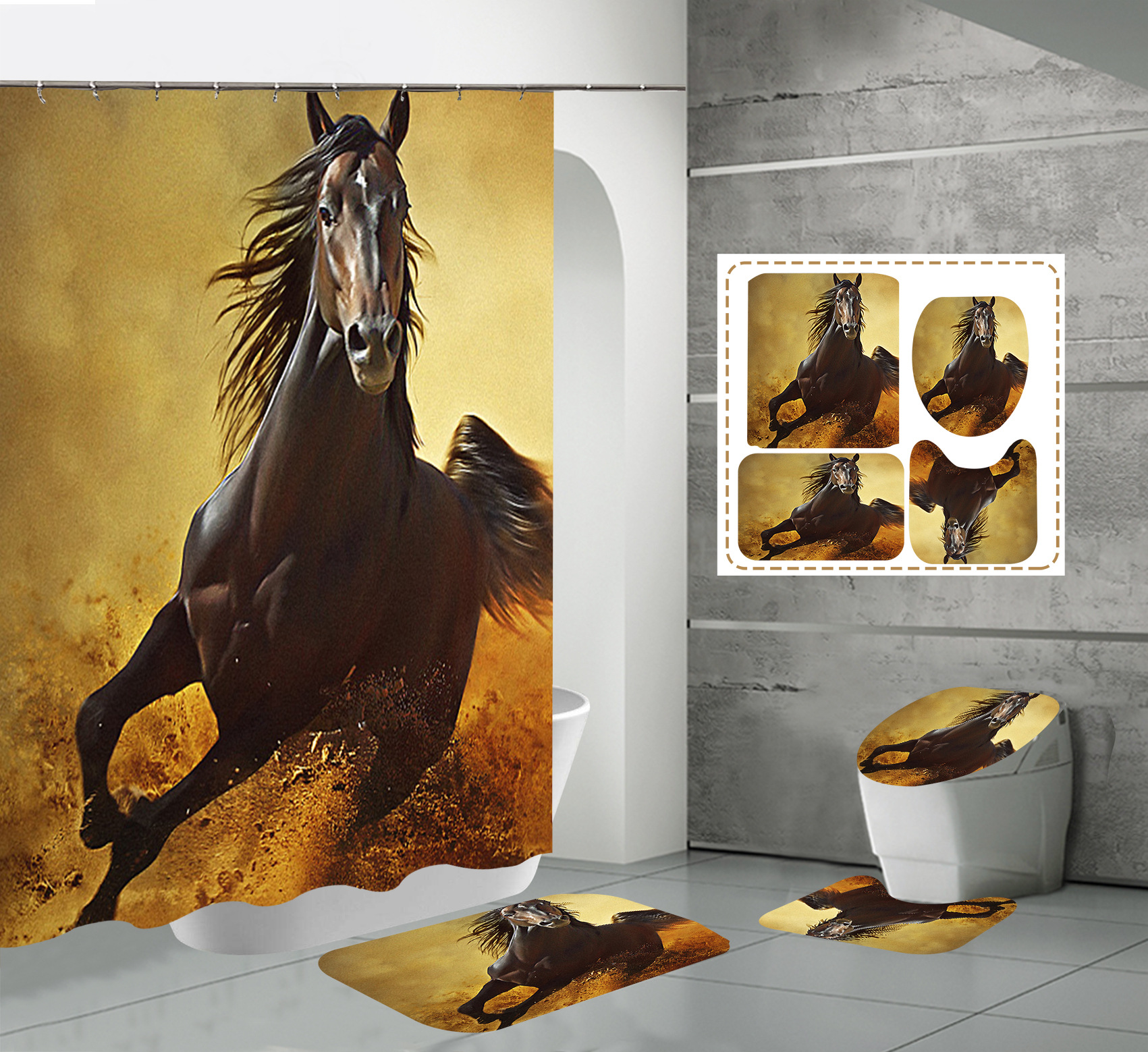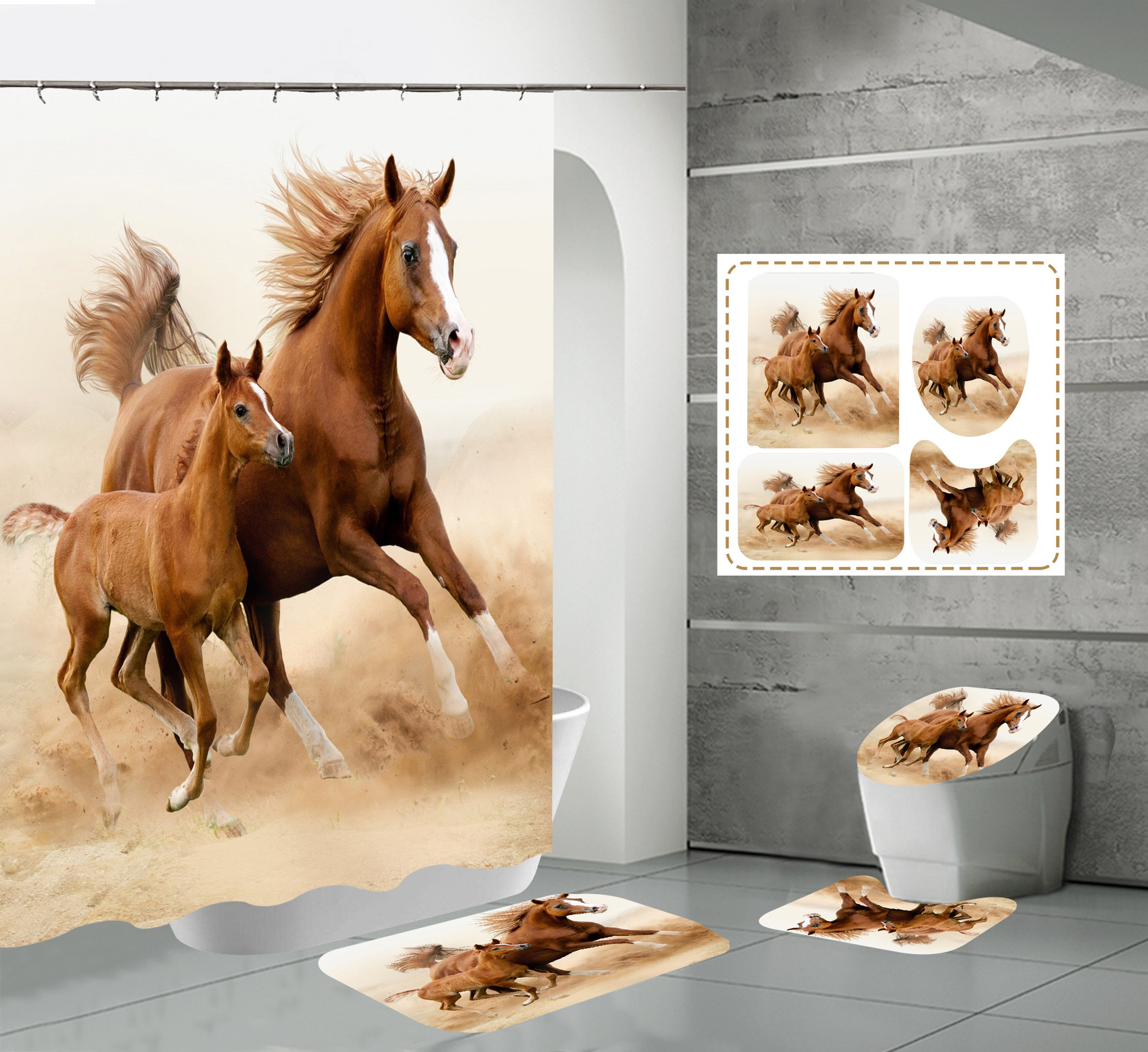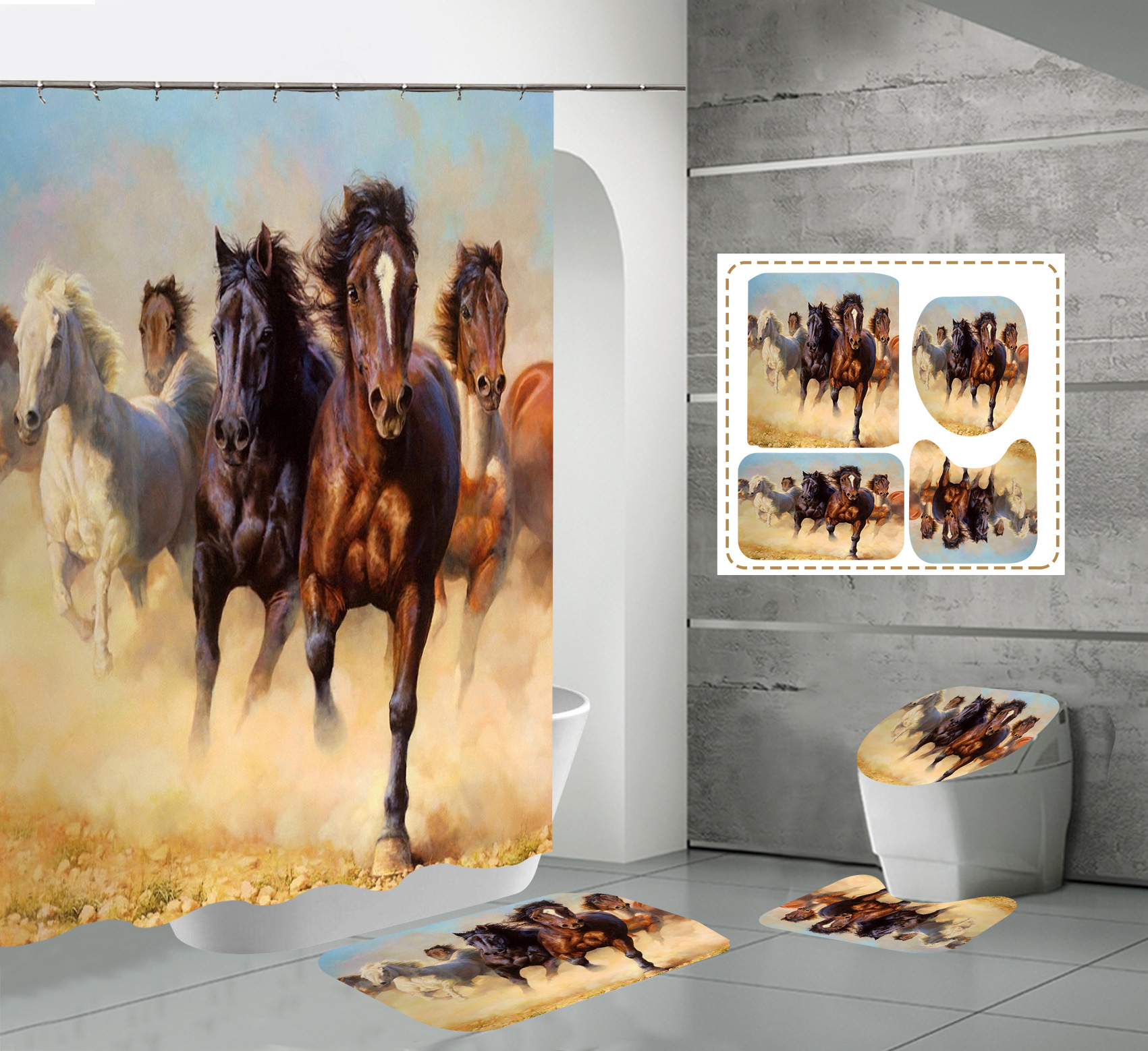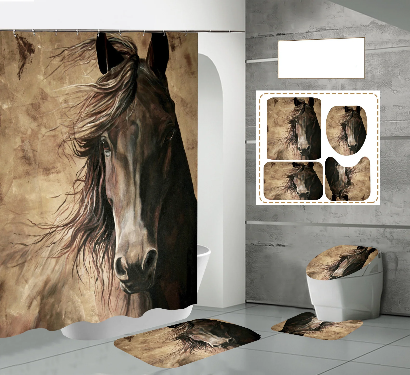 3D-HD-Digitaldruck, wasserdichter Polyester-Tier-Pferd-Duschvorhang
