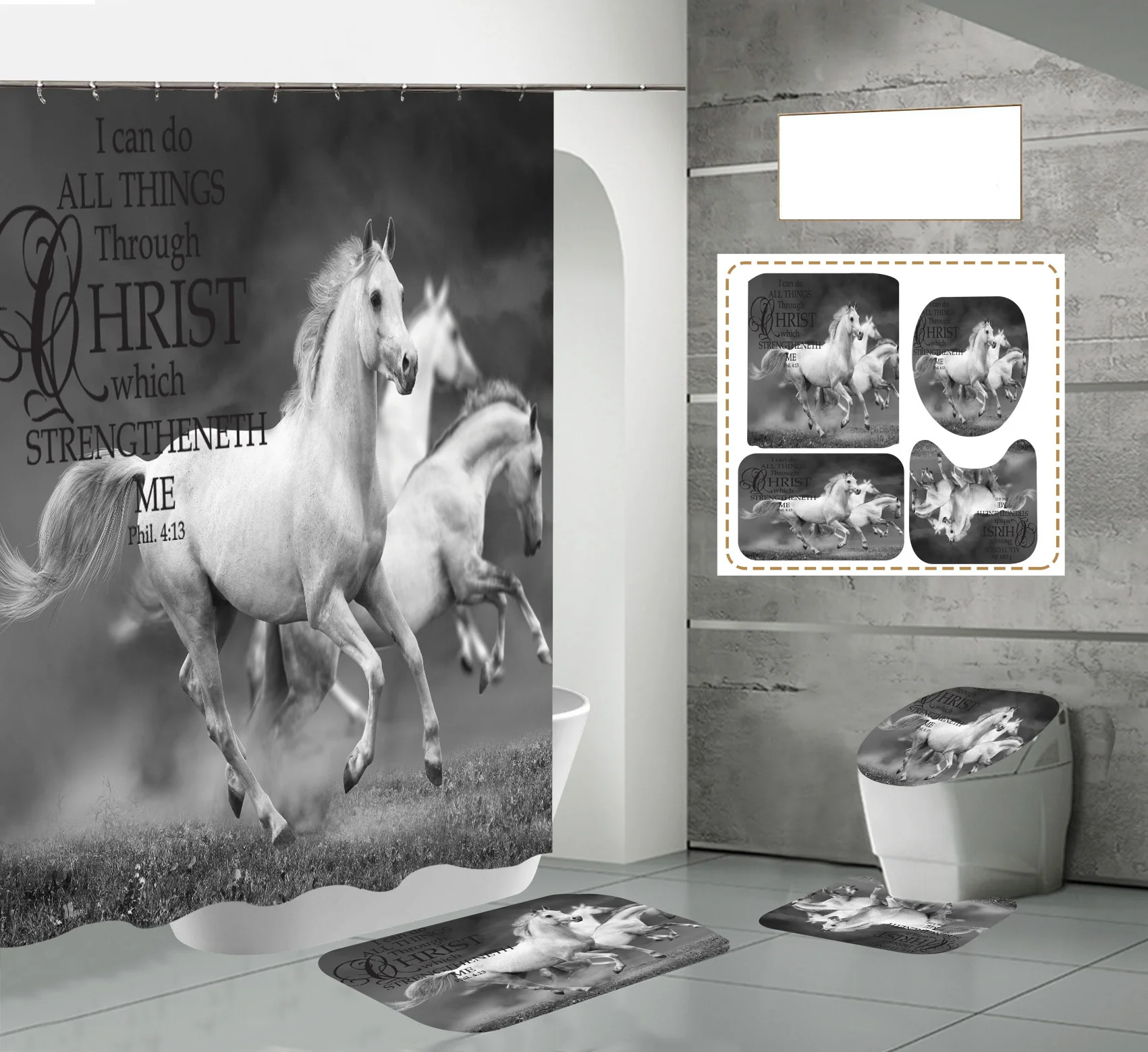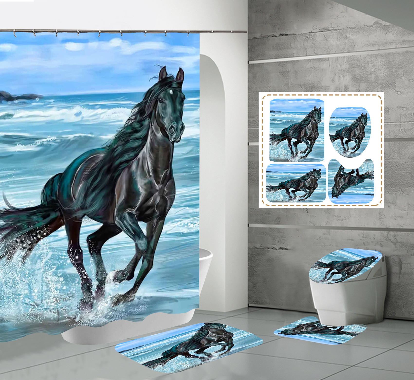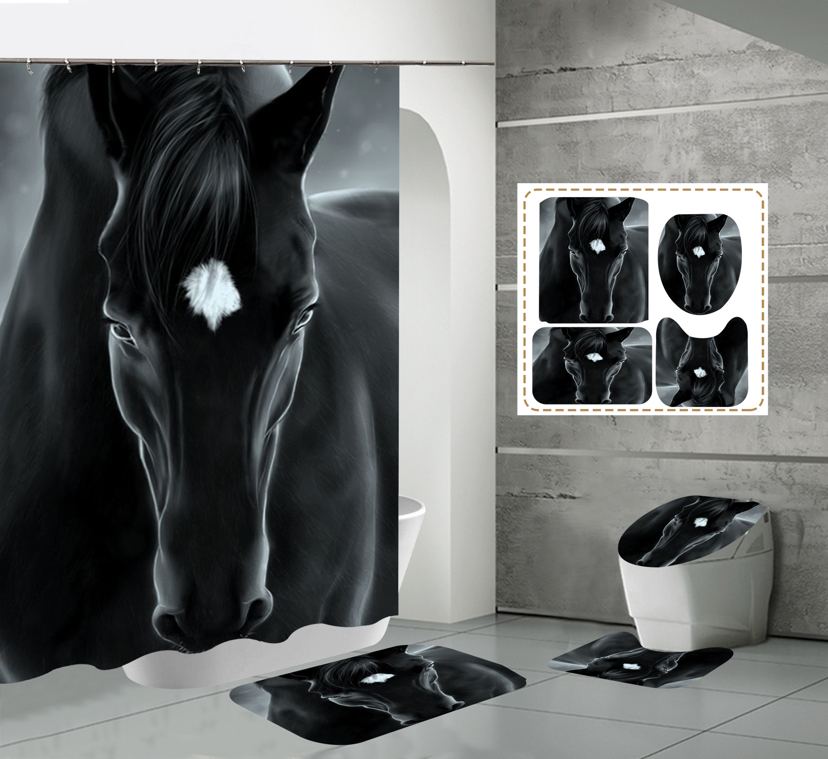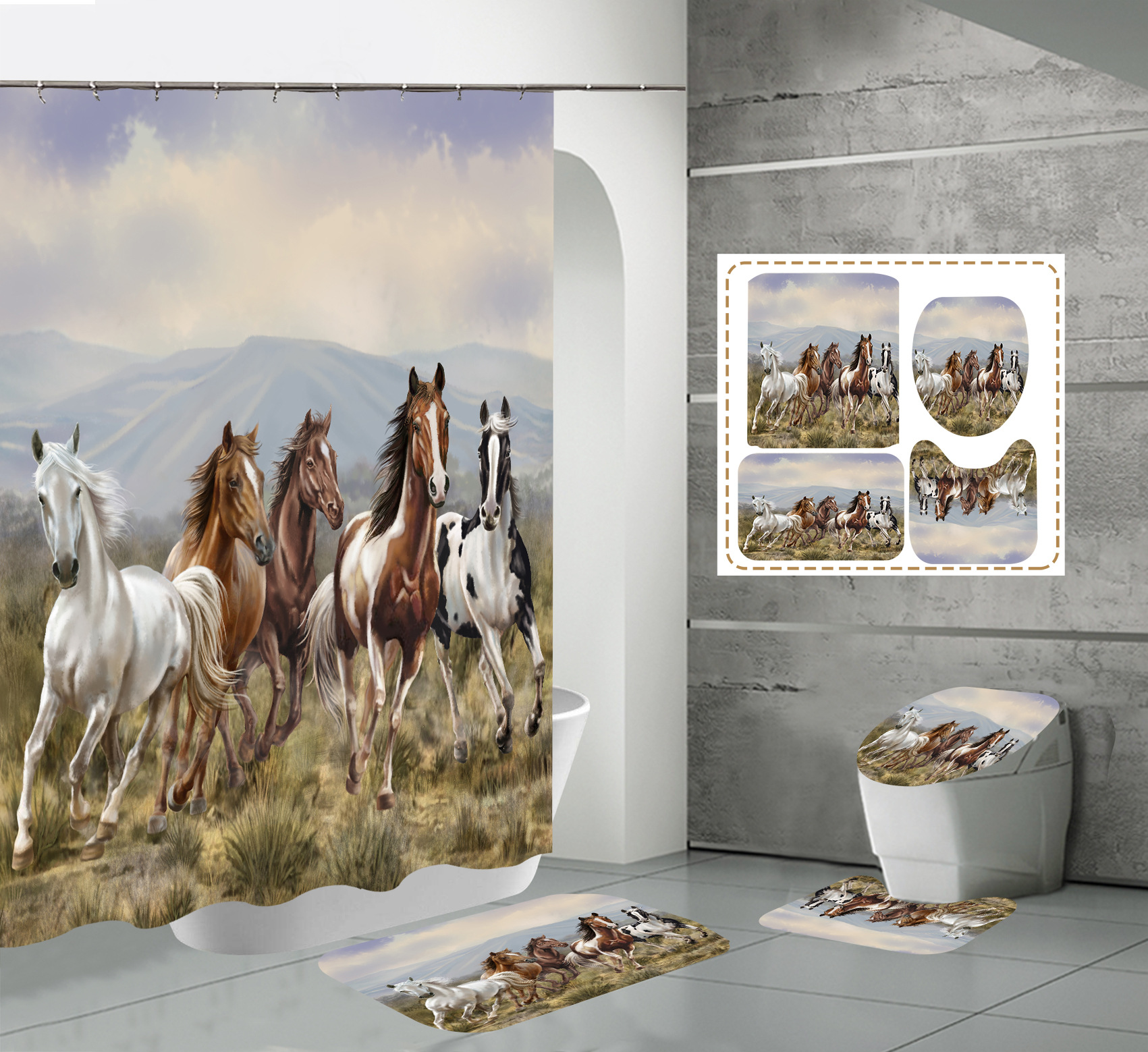 3D-HD-Digitaldruck, wasserdichter Polyester-Tier-Pferd-Duschvorhang