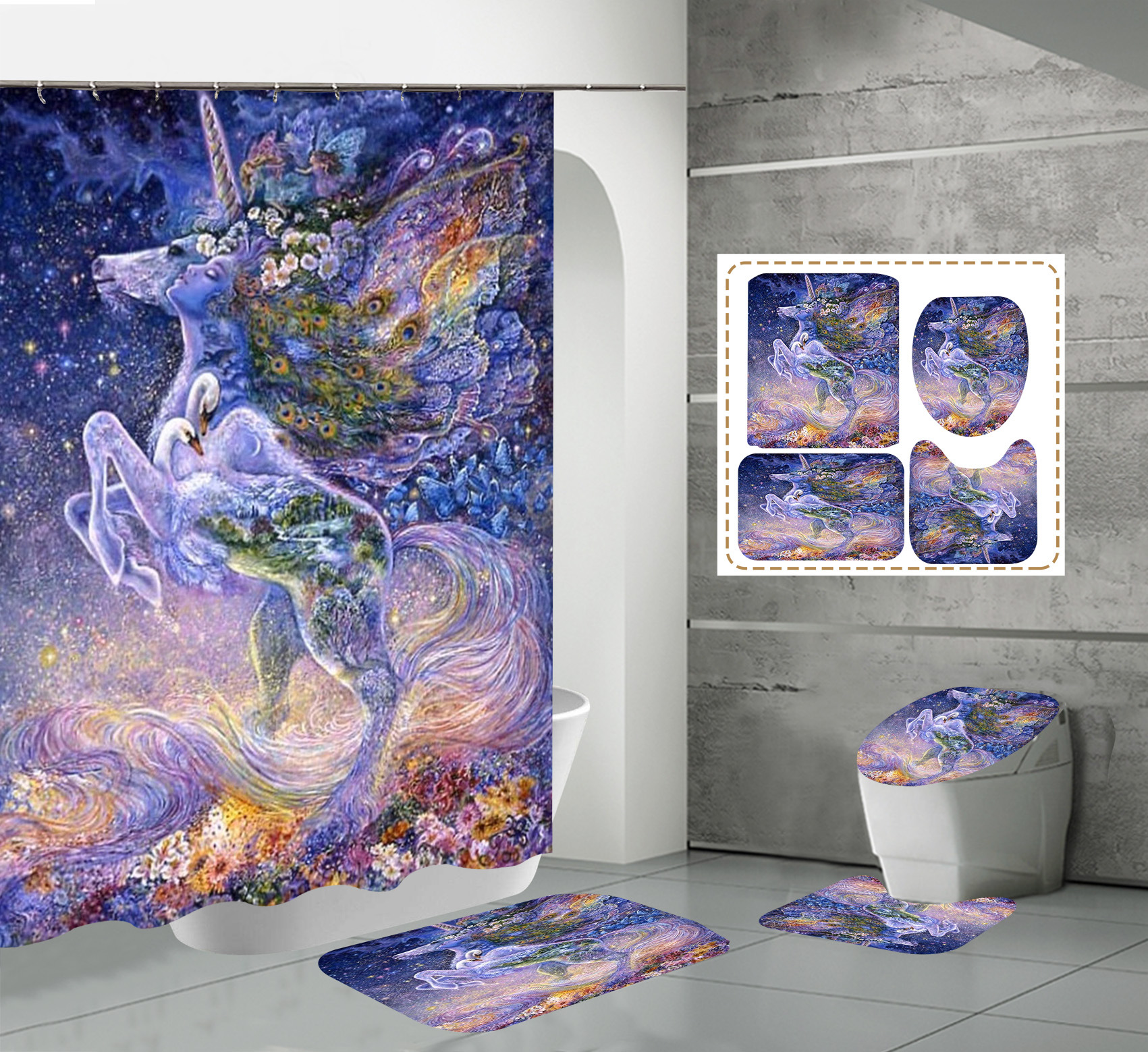 Vierteiliges Set, Duschvorhang, Bodenmatte, U-förmige Matte, WC-Abdeckung, 700 g