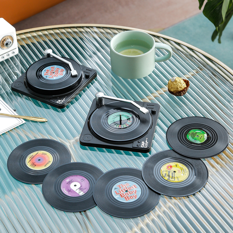 6PCS kreative Retro-Vinyl-Schallplatten-CD-Untersetzer Kaffeetassen-Untersetzer Wärmedämmunterlage 6 Scheiben mit 1 Aufbewahrungssitz