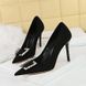 9511-K73 Bankett-Schuhe mit hohen, schmalen Absätzen, Wildleder, flacher Mund, spitze Metallschnalle mit Wasserdiamant, Einzelschuhe, Damen