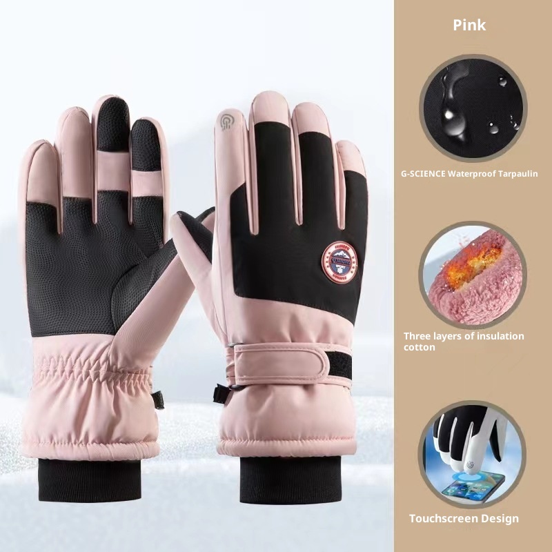 ActiveGo Skihandschuhe für Damen und Herren, Winterfleece-gefüttert, warm, für Outdoor-Aktivitäten wie Reiten und Bergsteigen, verdickt, wasserdicht