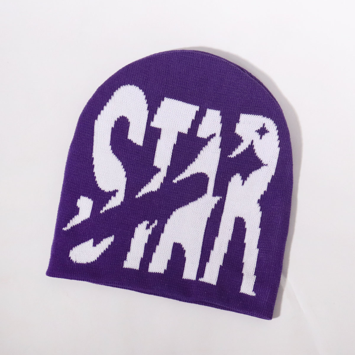 Alphabet Jacquard Strickmütze Trend Y2K Persönlichkeit lässig Kaltmütze Warme Kaltmütze