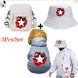 Animal Kangaroo 3-teiliges Set mit Tasche und Hut, flammender Totenkopf-Print, Haustierbekleidung, dreiteilige Kombination, bequeme Winterkleidung für Haustiere, ideal für Reisen mit Haustieren im Freien
