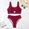 Bikini Einfarbig Hoch taillierter Sexy Zweiteiliger Badeanzug