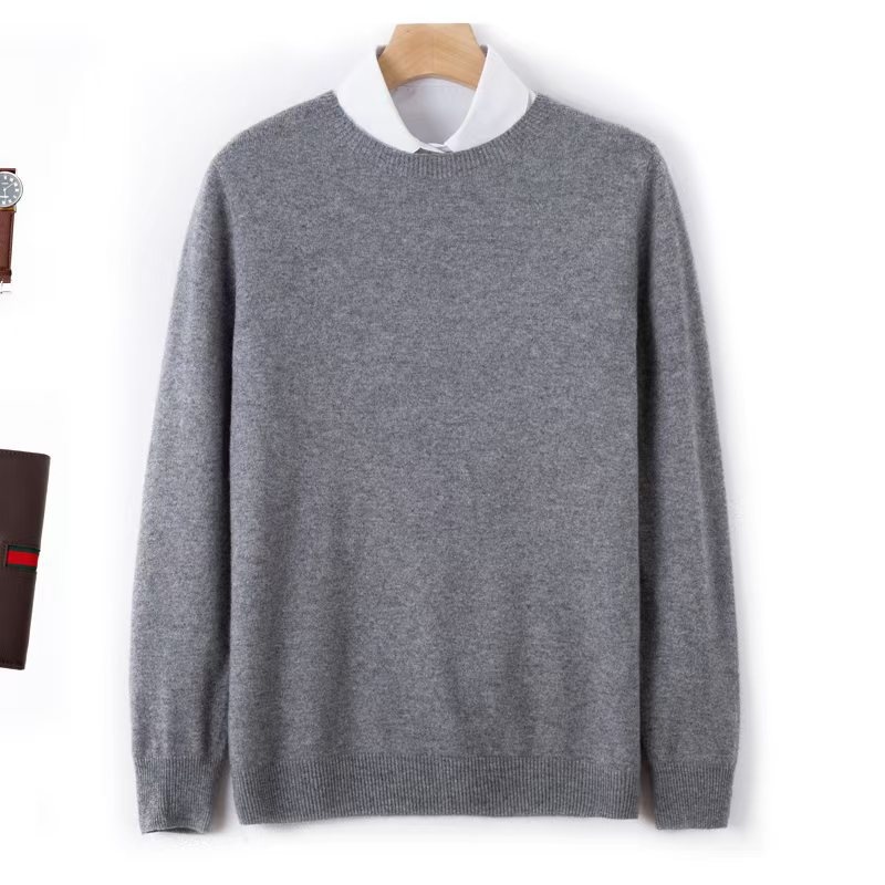Seamless One-Line Ready-to-Wear 100% Pure Wool Sweater Simple Round Neck Men's Knitted Base Shirt Wool Sweater for Spring and Autumn