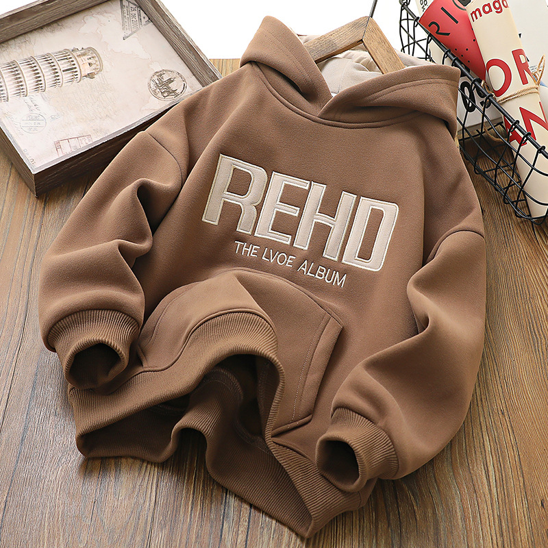 Boys plush and thick hoodie for autumn and winter, new handsome children's winter warm hooded top for wearing children's clothing