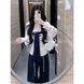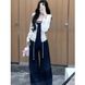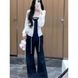 ChicShe Dreiteiler für Damen, Frühherbst, Hot Girl Kragen, dünne Langarmbluse, gestreiftes Tube-Top, hochtailliert, figurformend