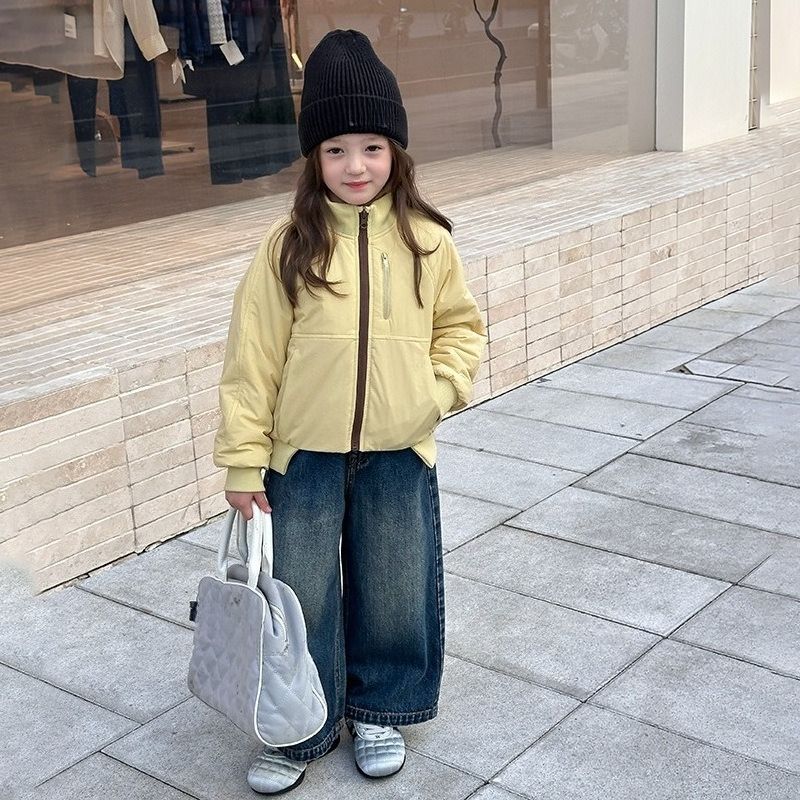 Kinder-Baumwollkleidung Mädchen Warme Winddichte Kurze Stehkragenjacke mit Baumwollfutter