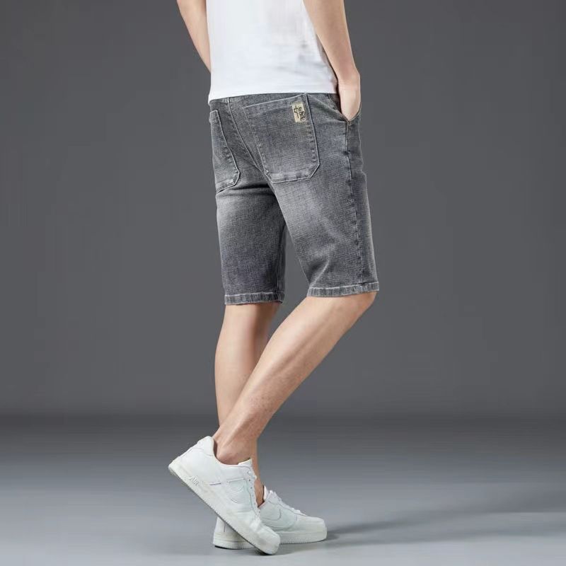 China-Chic Bestickte Jeans-Shorts für Jungen, koreanische Version, schmale Passform, elastischer gerader Schaft, 2024 Sommer, dünne Hose für Männer