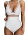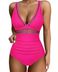 Damenbekleidung Einteiliger Badeanzug Weiblicher Hohler Netzstoff Tiefes V Geraffter Durchsichtiger Bikini