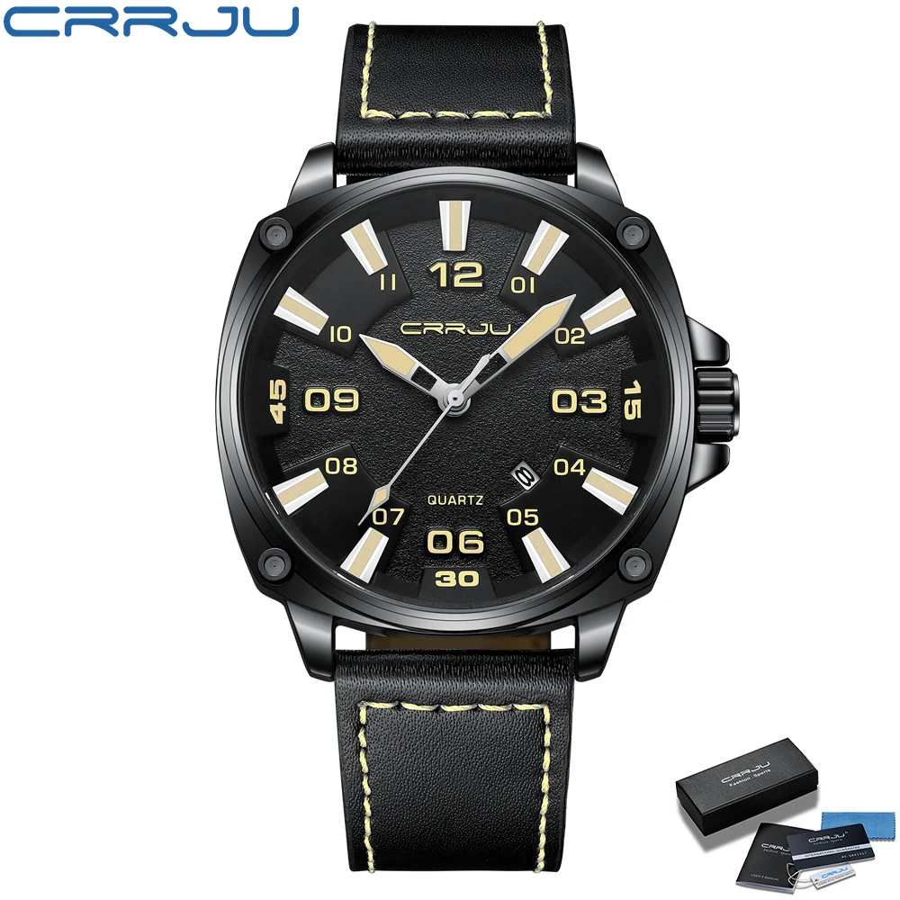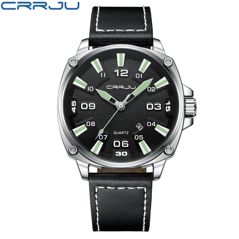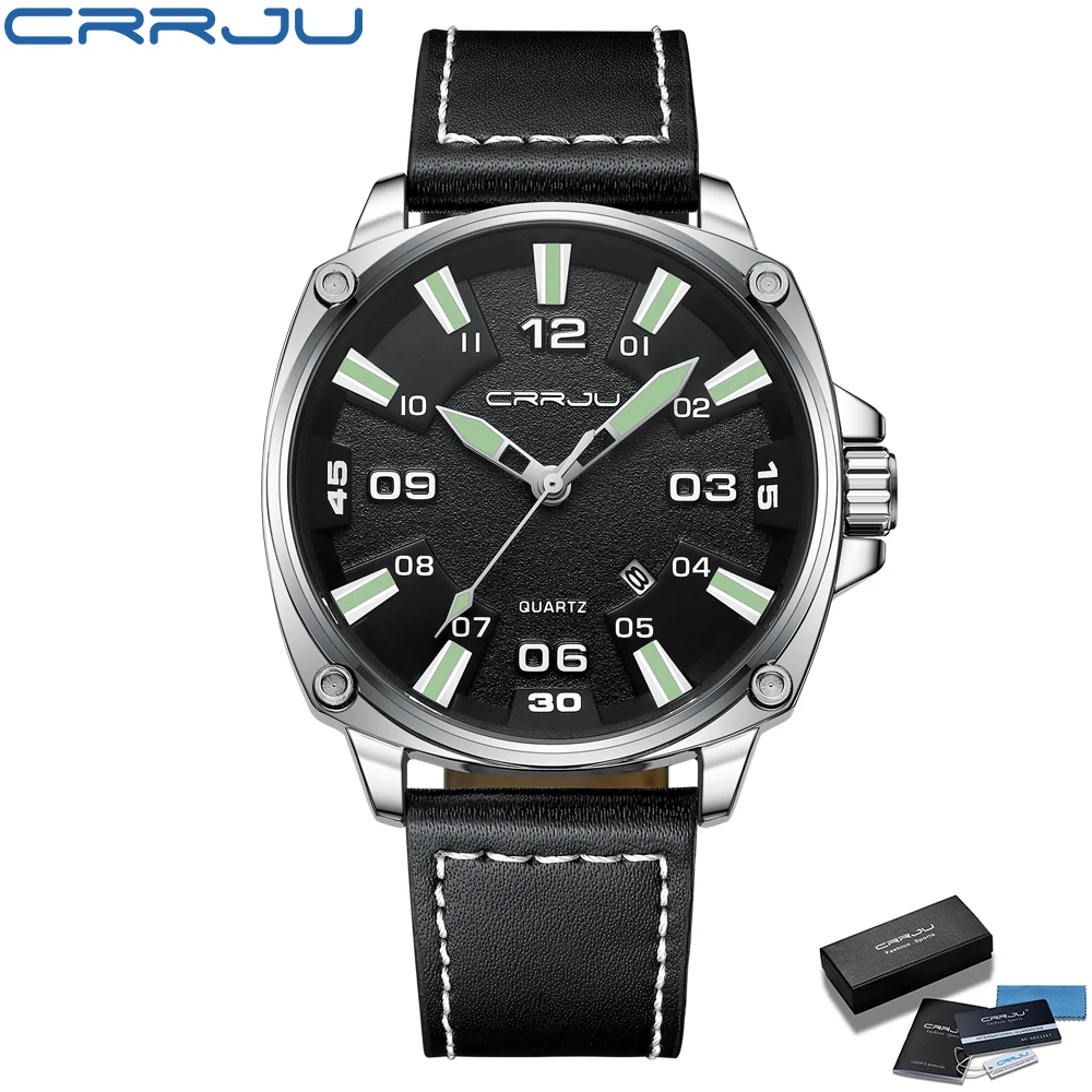 CRRJU Einfache, modische, dünne Armbanduhr mit Datumsanzeige, luxuriöses Design, atmungsaktive Lederuhren für Herren, Quarzuhr
