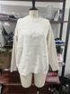 Damen-Pullover, kuschelig locker gestrickt mit Häkelspitze, langärmelig – Weiß/Grau (S/M/L)