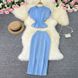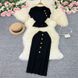 Damen Temperament Kurzarm-Strickoberteil High-End-Metallknopf schmaler Rock High-End-Zweiteiler
