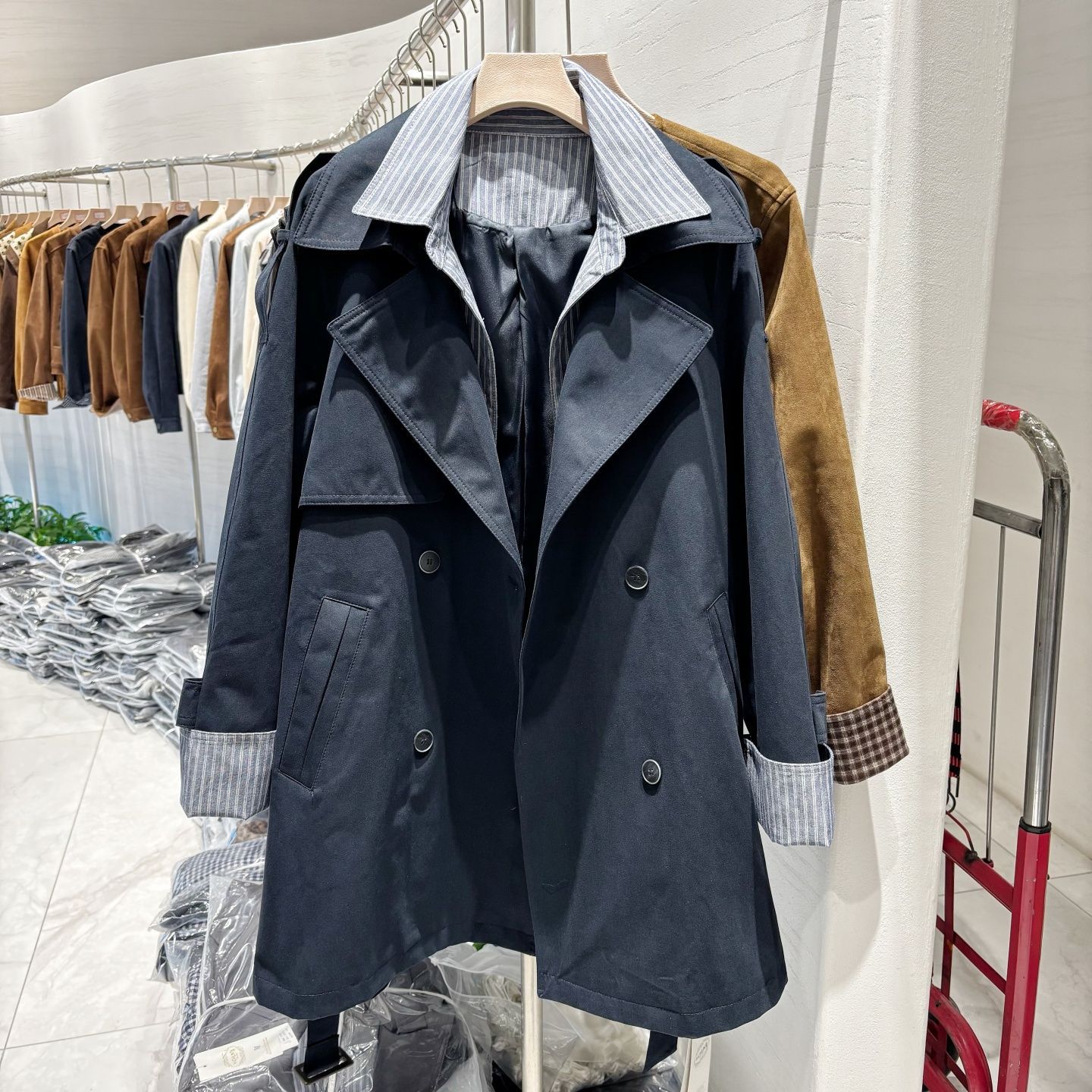 Fake two-piece striped patchwork trench coat for women, mid-length, 2026 spring new style, workwear, loose, casual, age-reducing, slimming jacket