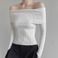 Damenbekleidung One-Shoulder-Top für Damen, Herbststil, Temperament, eng anliegend, schulterfrei, sexy, langärmelig, gestricktes Unterhemd