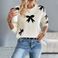 Damenbekleidung Schleifen-Strickpullover – Süßer & gemütlicher Winterpullover, lockere Passform, lange Ärmel, Jacquard-Design (Cremeweiß)
