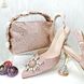 Damenschuhe Schlichtes Party-Set aus spitzer Damenschuhe und Tasche mit Diamantriemen am Griff