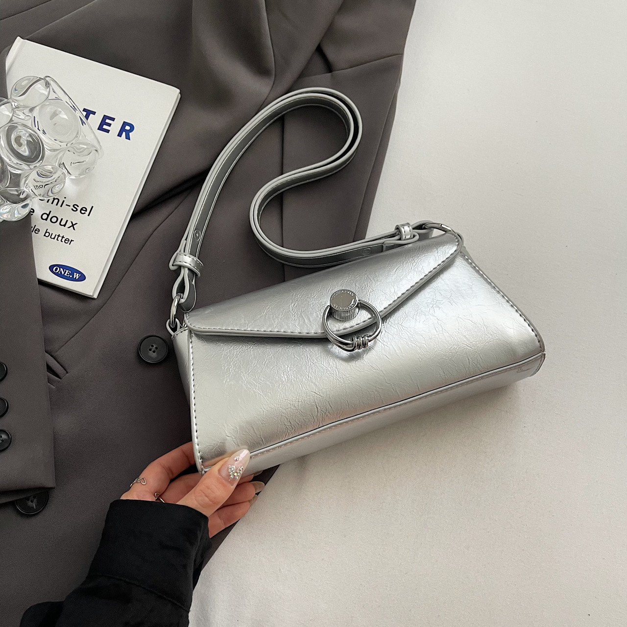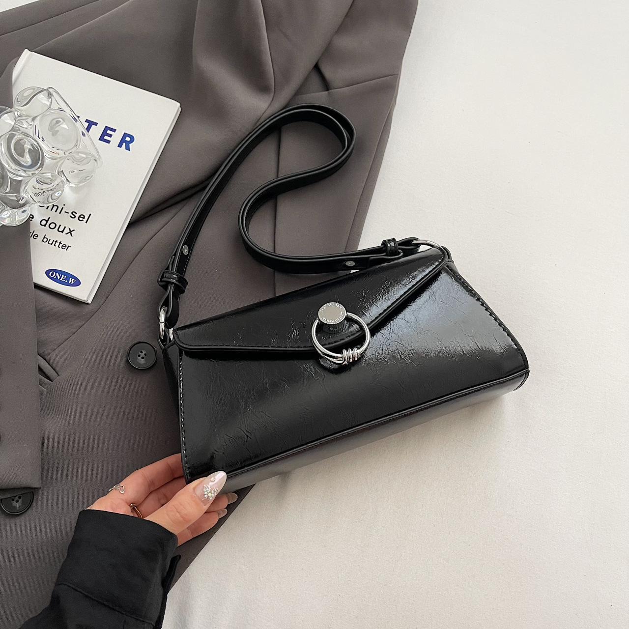 Die beliebte kleine quadratische High-End-Mode-Sticktasche aus Ölwachsleder dieses Jahres, einfache Umhängetasche mit einer Schulter