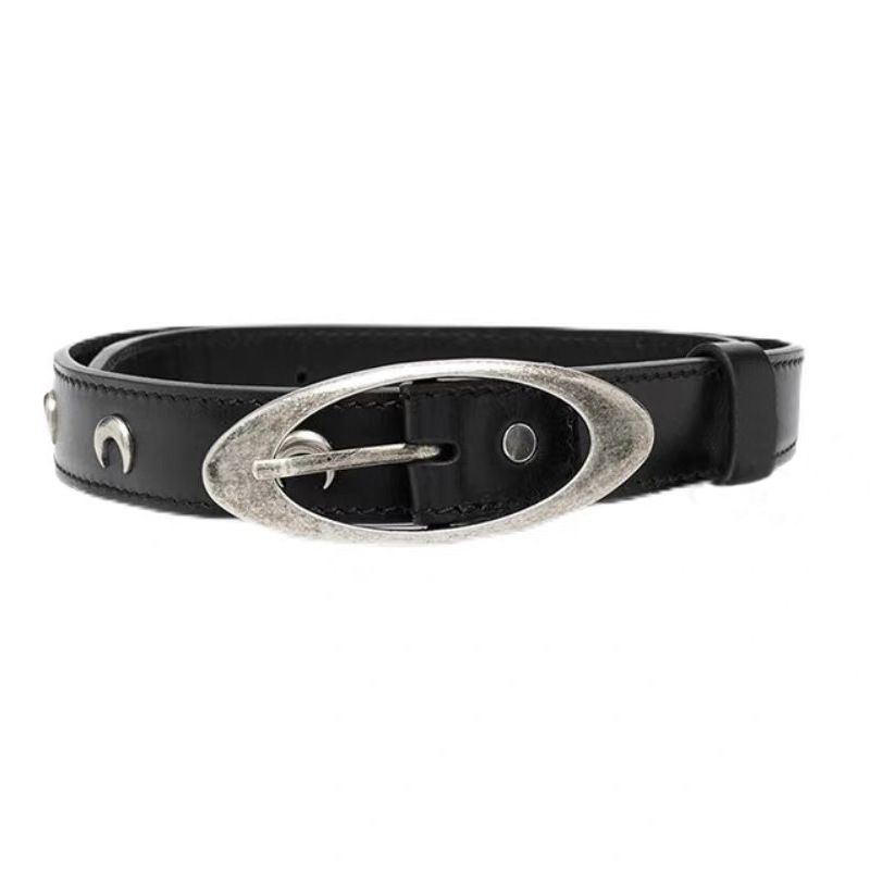Genuine Leather Vintage Hardware Moon Belt for Women Crescent Punk Cowhide Belt for Women Decorative Dress Belt