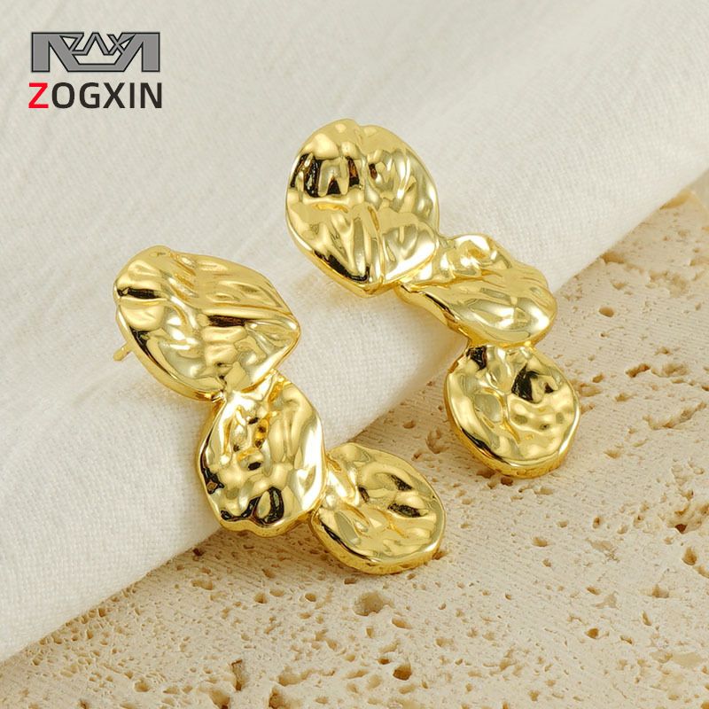 French Style Stainless Steel Lava Earrings for Women Irregular Petal Wrinkle Design Titanium Steel Earrings Jewelry