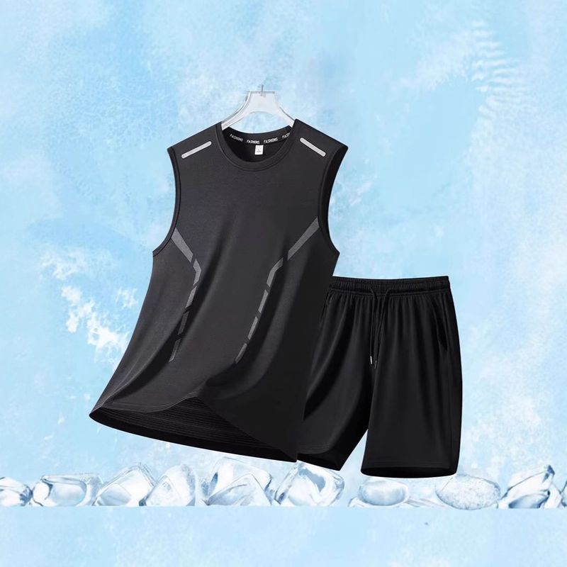 Fitness Quick-Dry Vest Set for Men Summer Casual Versatile Ice Silk Thin Sleeveless Running Sports Set