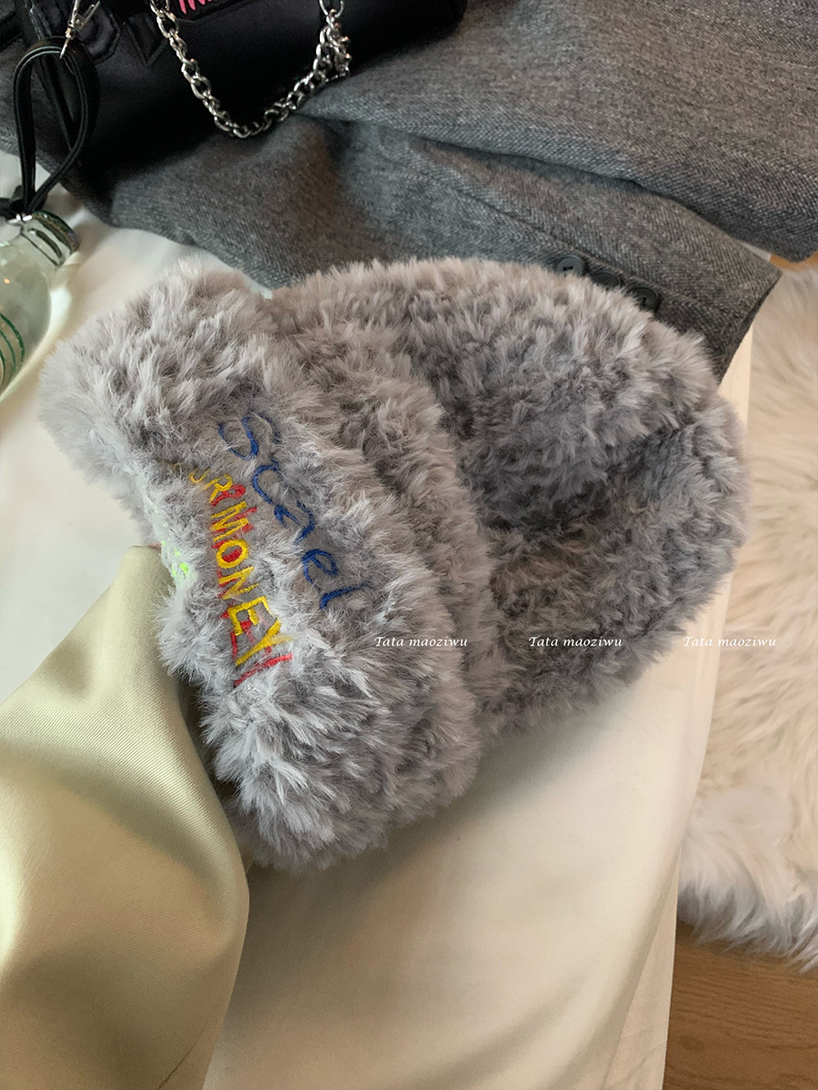 Fury Strick für Damen im Herbst-Winter mit verdicktem, warmem Stirnband, koreanische Version mit Gesicht und kleiner Mütze Tide