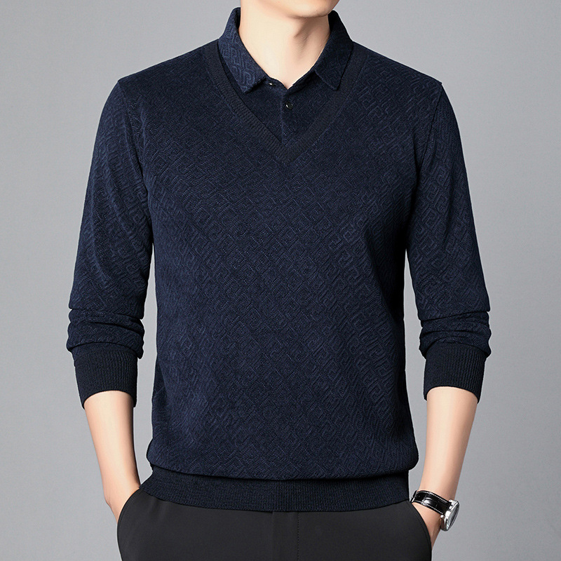Autumn and Winter Boutique Men's Fake Two Piece Knitted Shirts for Middle aged and Elderly Men's Plush Thickened Sweater Square Neck Warm Coat Dad