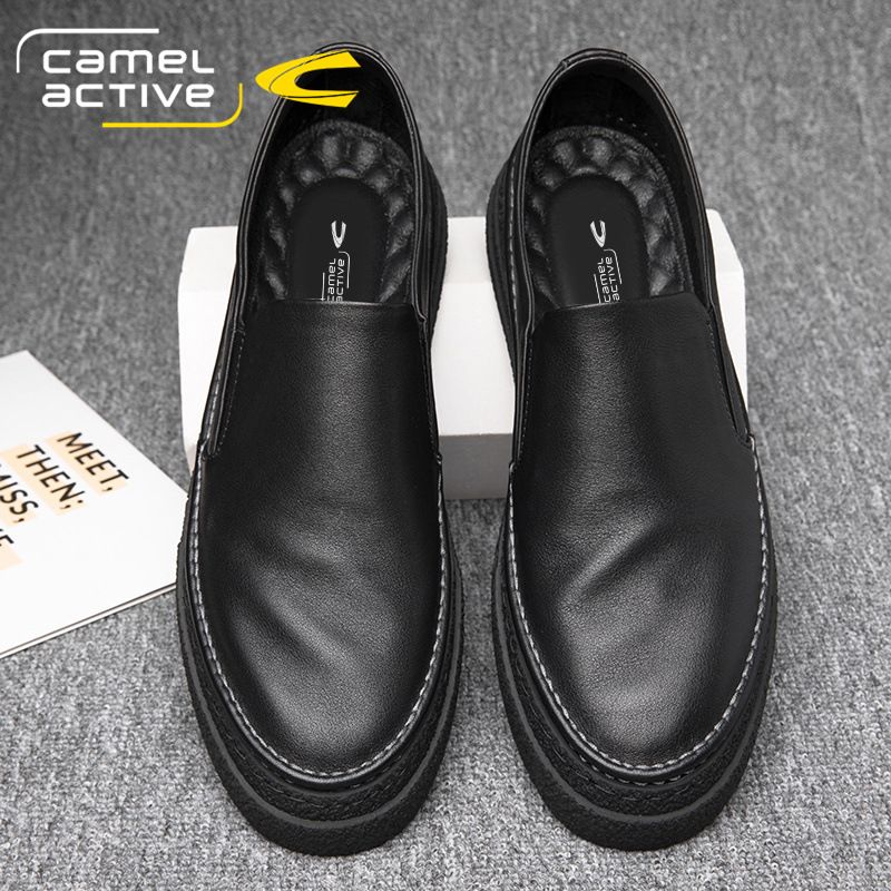 German Camel Dynamic 2022 Autumn New Business Casual Shoes Slip-On Flat Work Leather Shoes Thick Sole Hidden Heel