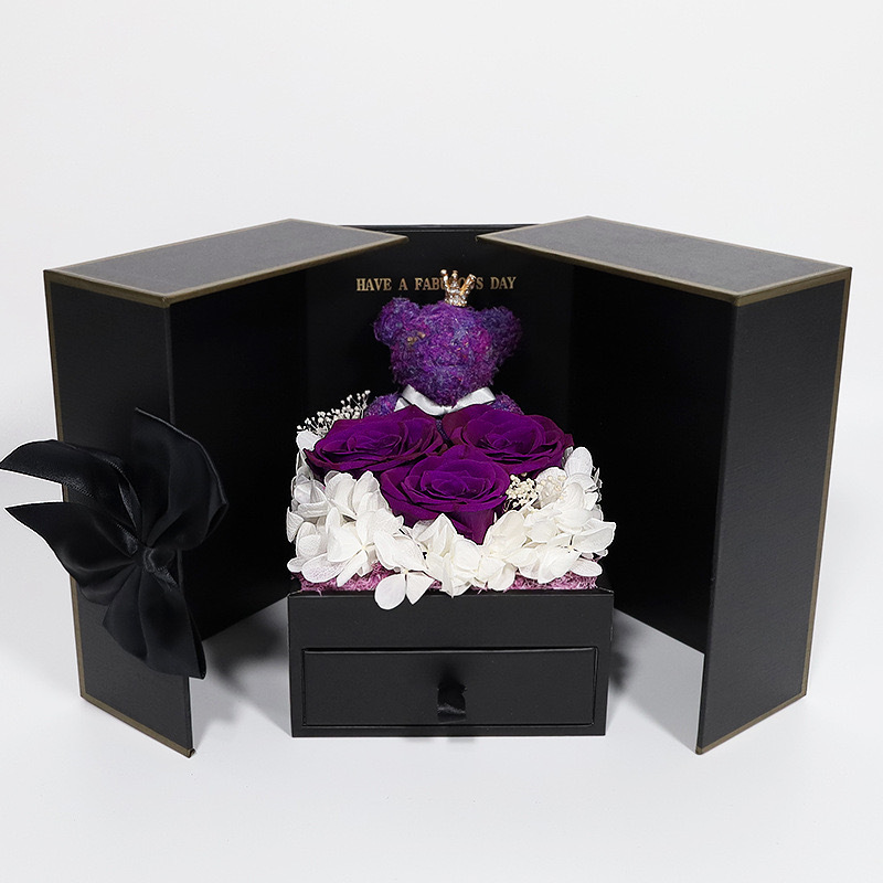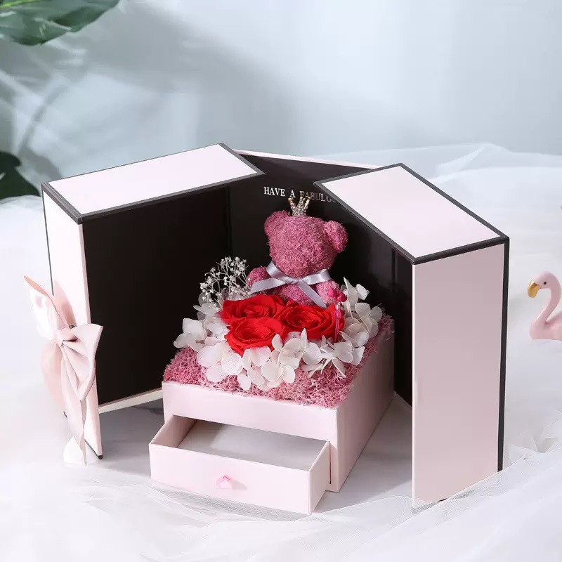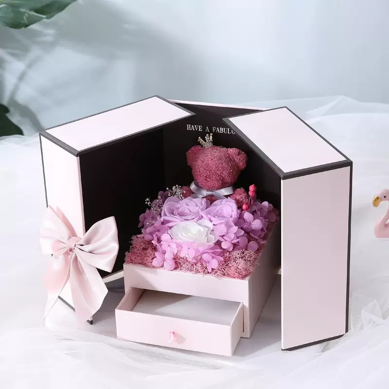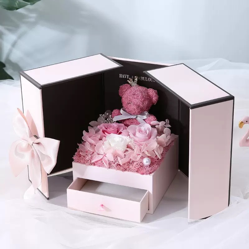 Valentine's Day Necklace Jewelry Box Lipstick Packaging Box Birthday Gift Sweetheart Bear Eternal Flower Double Door Gift Box