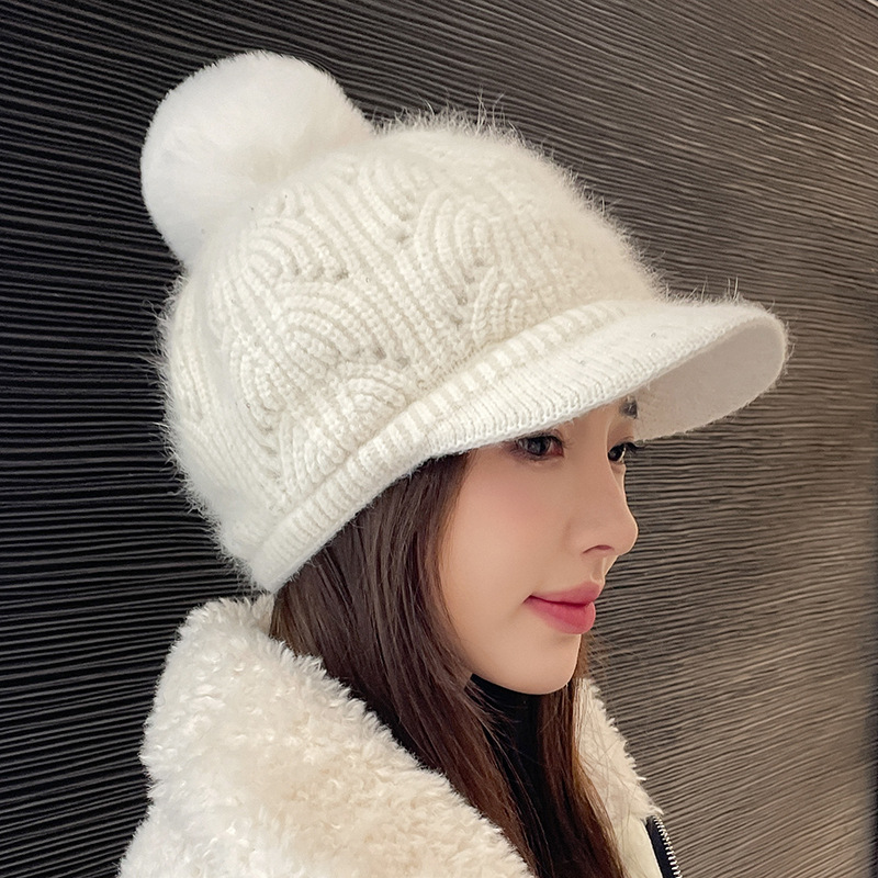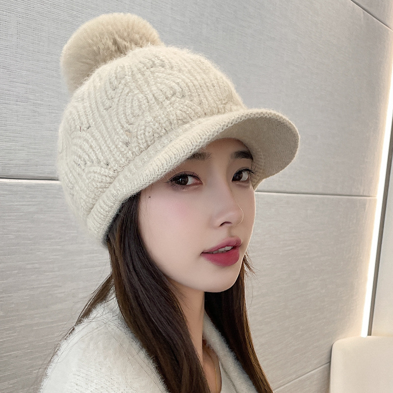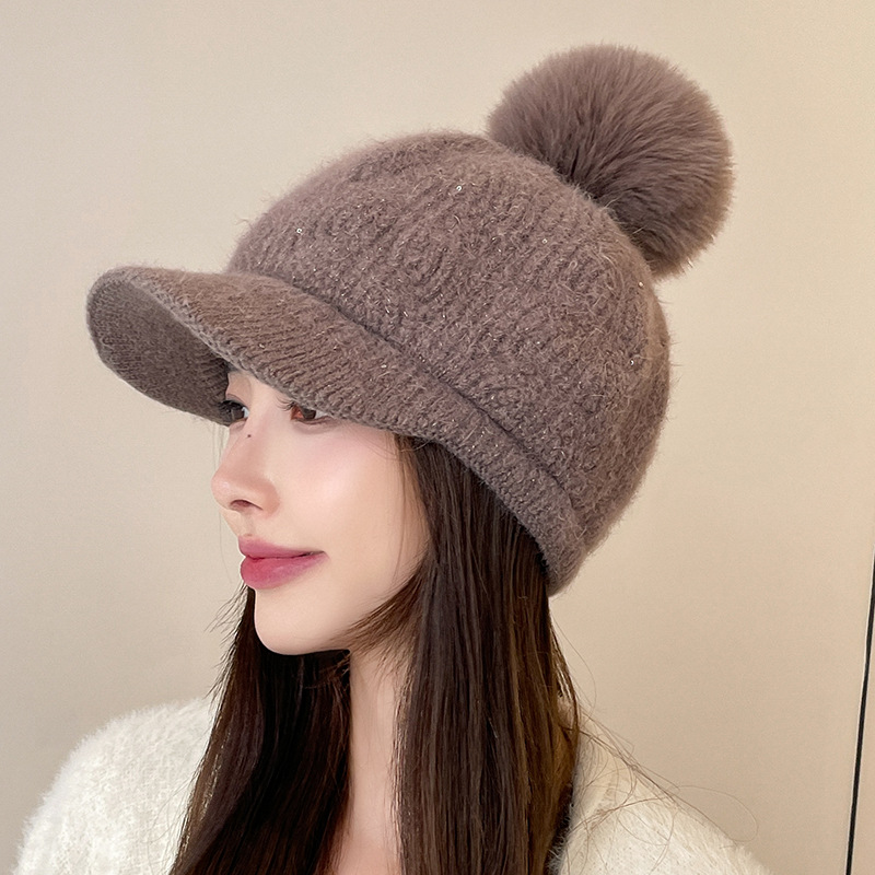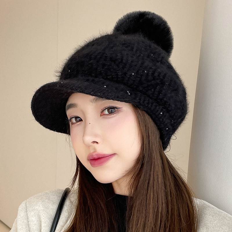 Herbst und Winter Samt Kaninchenfell Damen Baseballmütze Textur Pailletten Wollknäuel Gestrickte Entenschnabelmütze Trend Warme Mütze Garnmütze