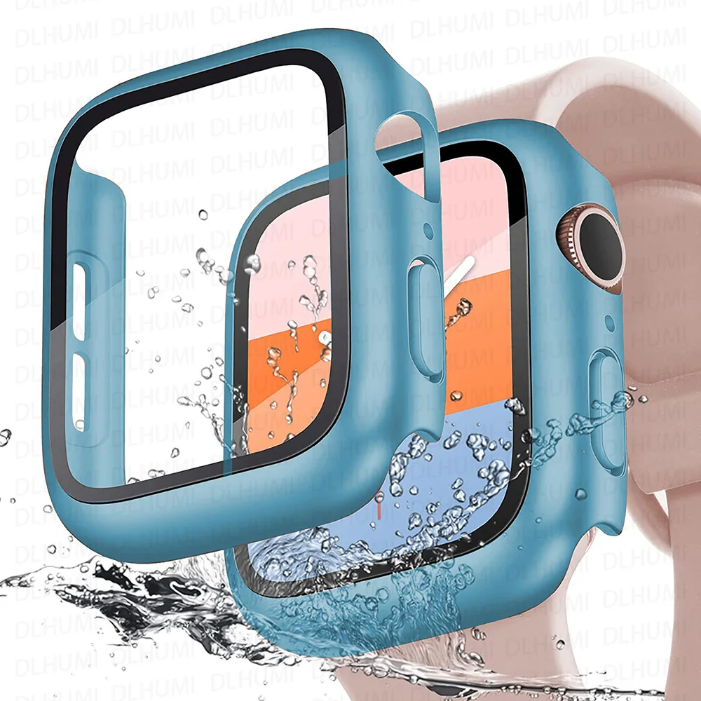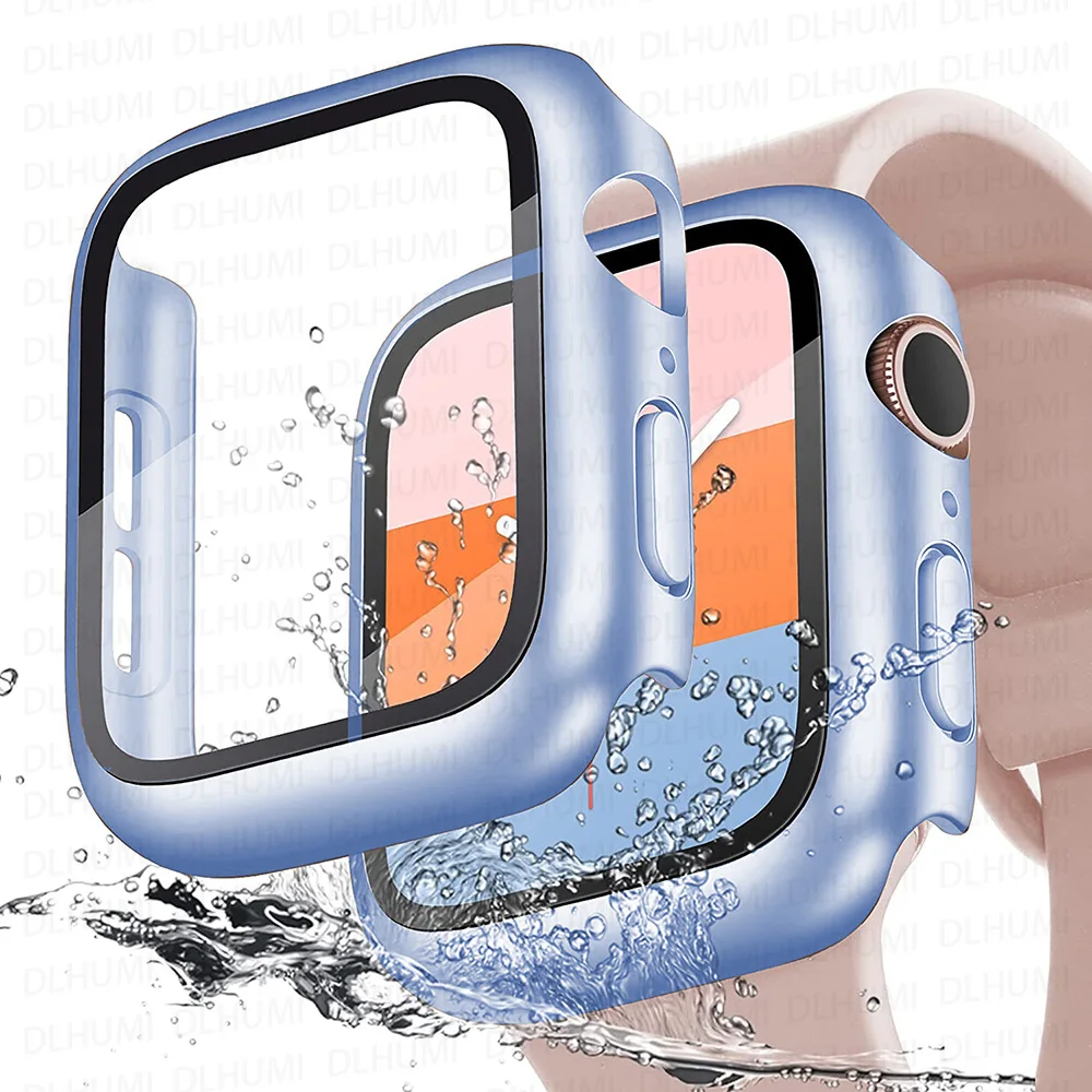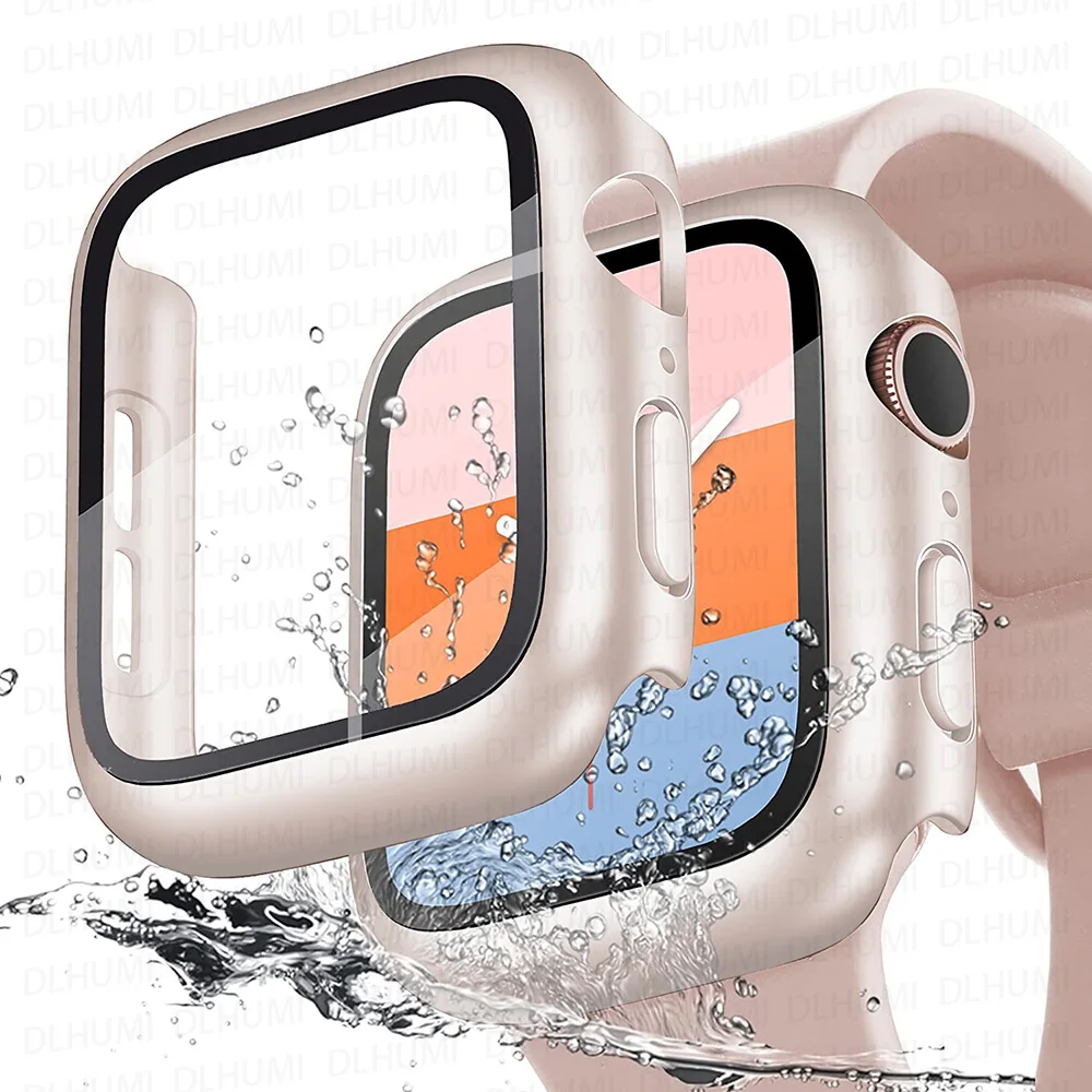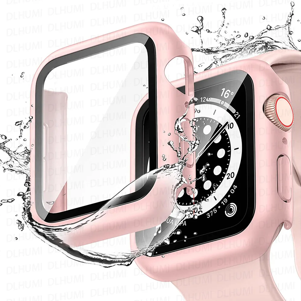 Tempered Glass+cover For Apple Watch 41mm 45mm 44mm 40mm 42mm 38mm PC bumper Screen Protector Case iWatch series 6 5 4 3 se 7 8