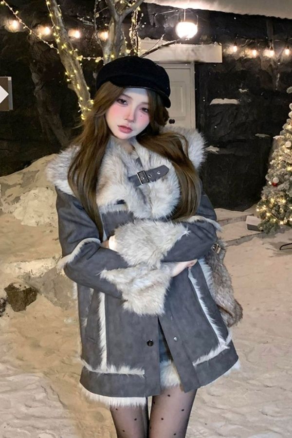 Grau Kran Silber Schnee Winter Neue frauen Anzug Elegante Pelzigen Patchwork High-end-Mantel Vielseitig Mode Shorts