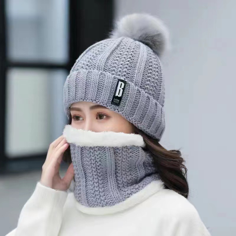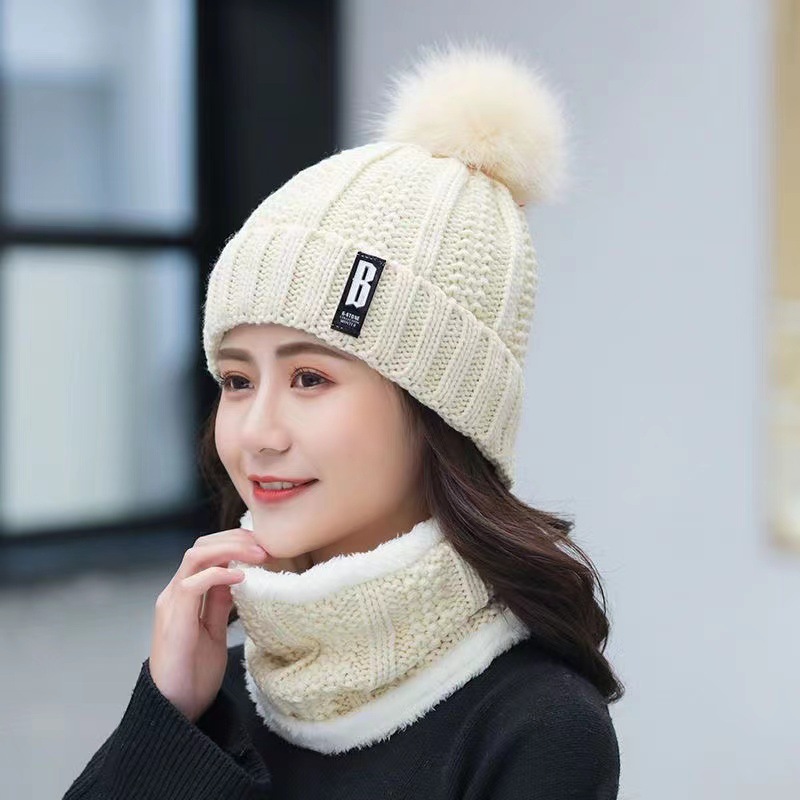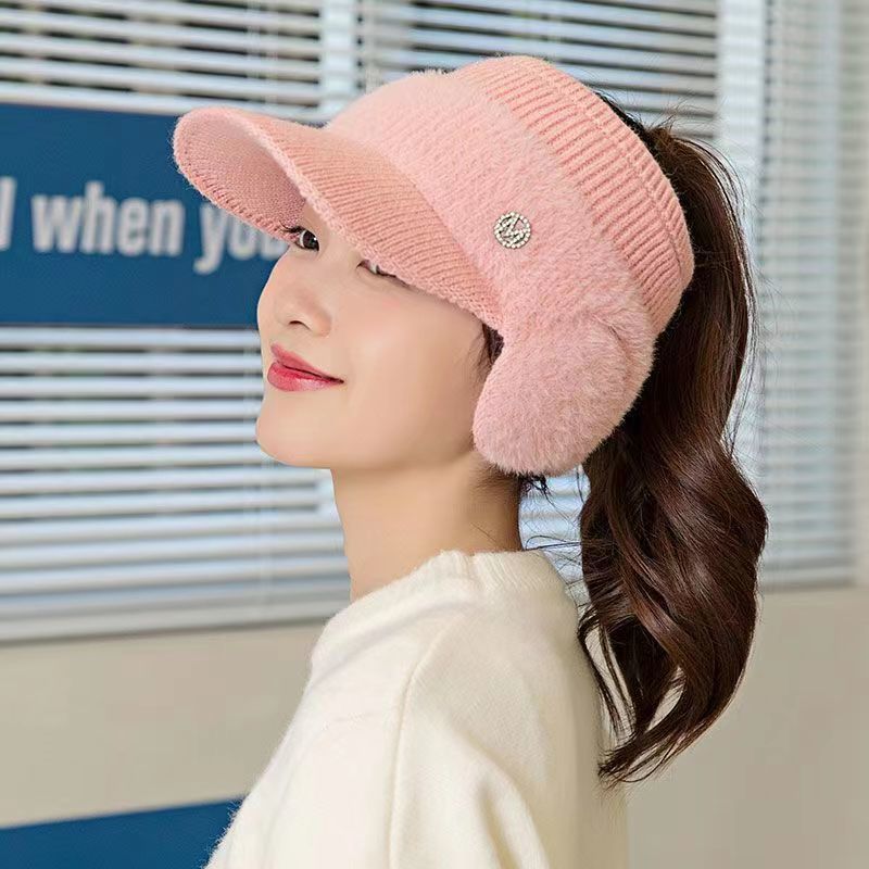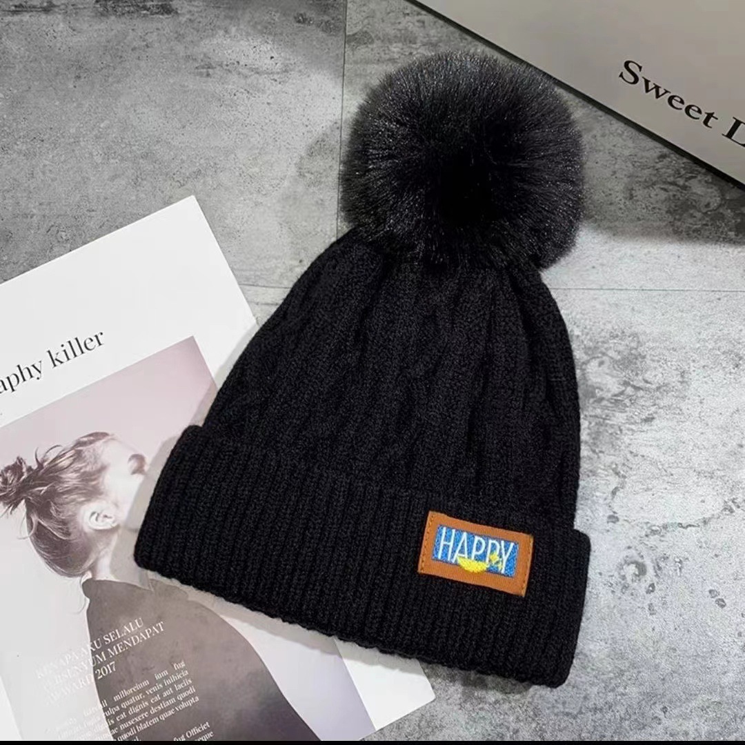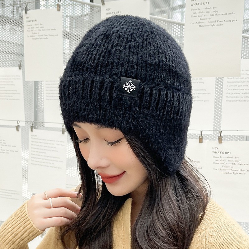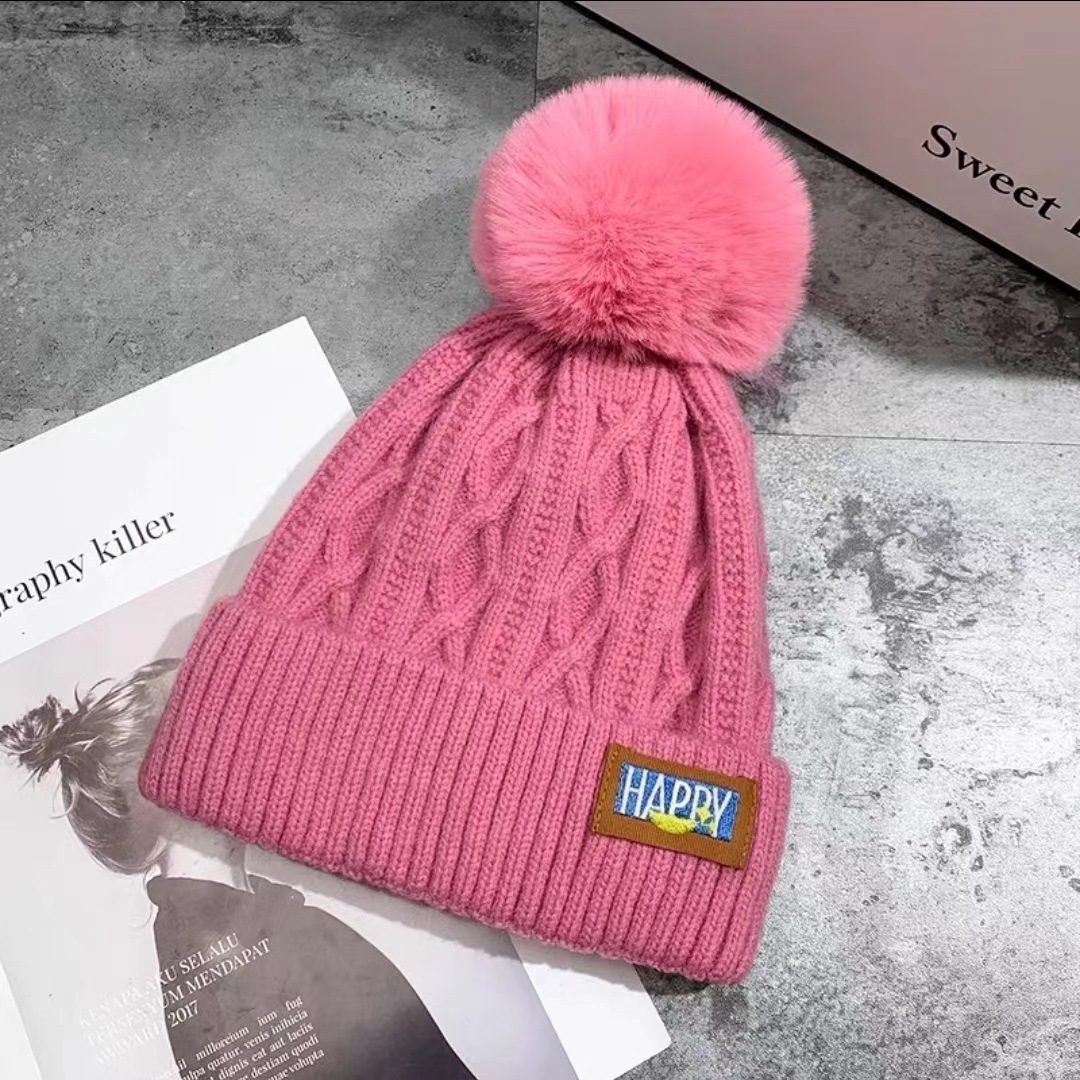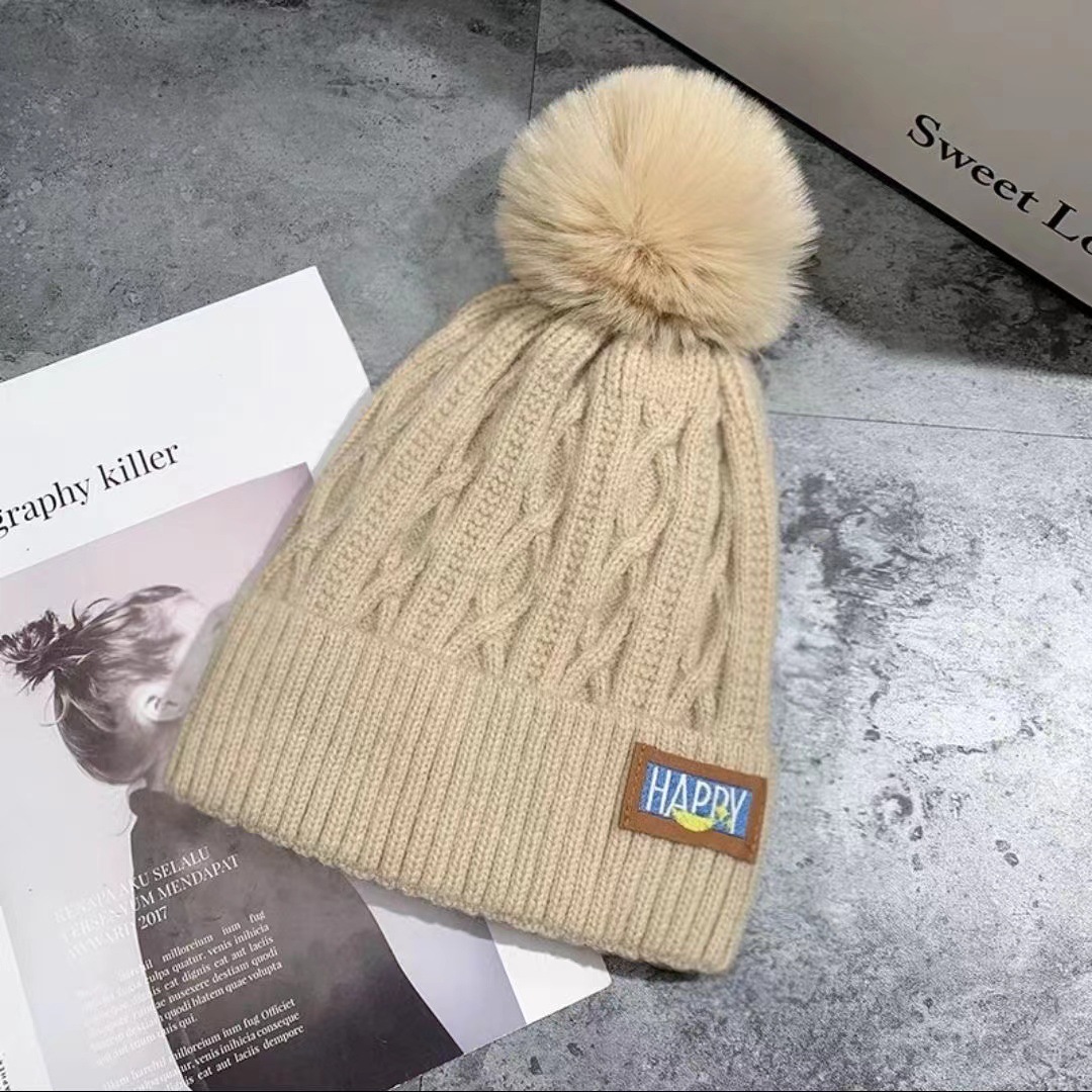 New autumn and winter women's wool ball and velvet warm pullover hat for students, cute outdoor cold proof fashionable knitted wool hat