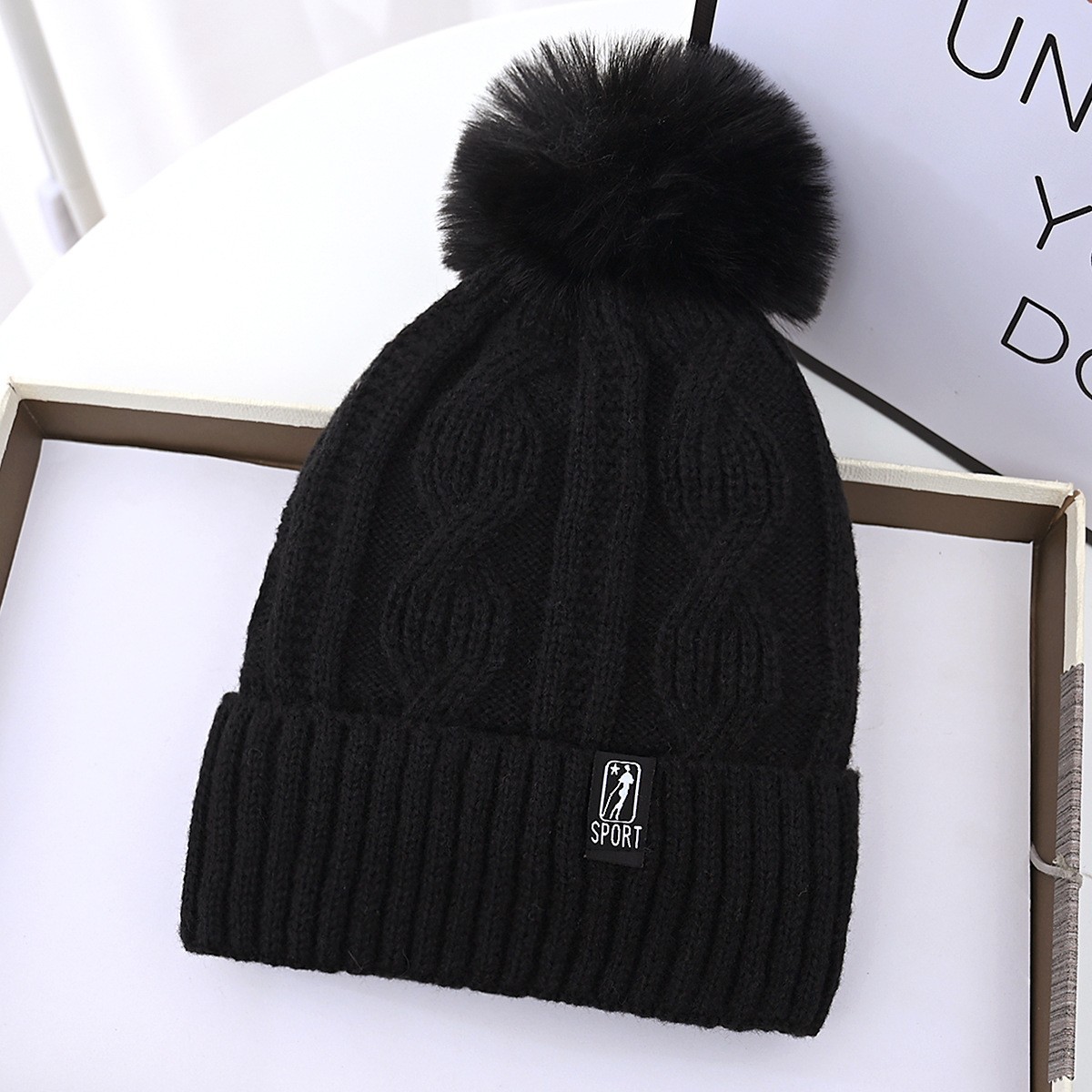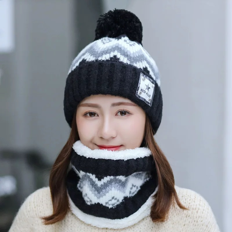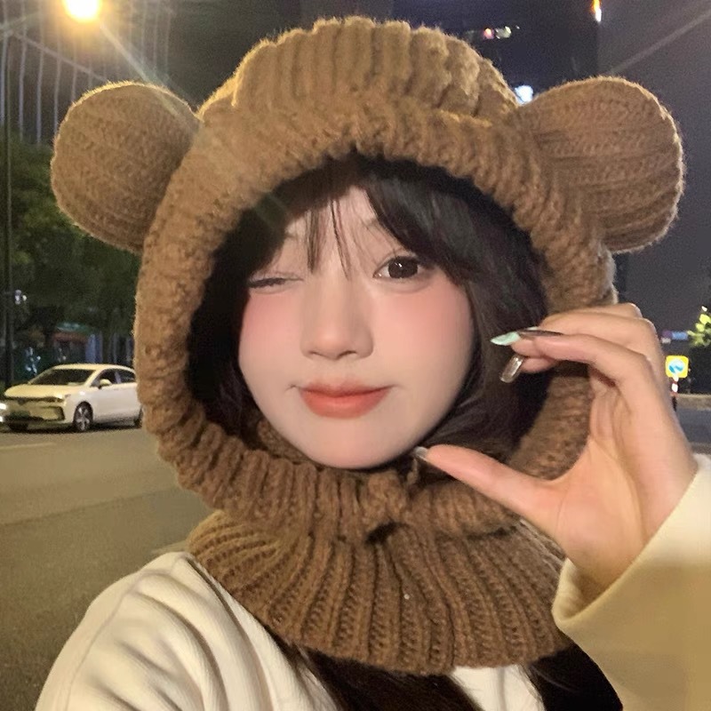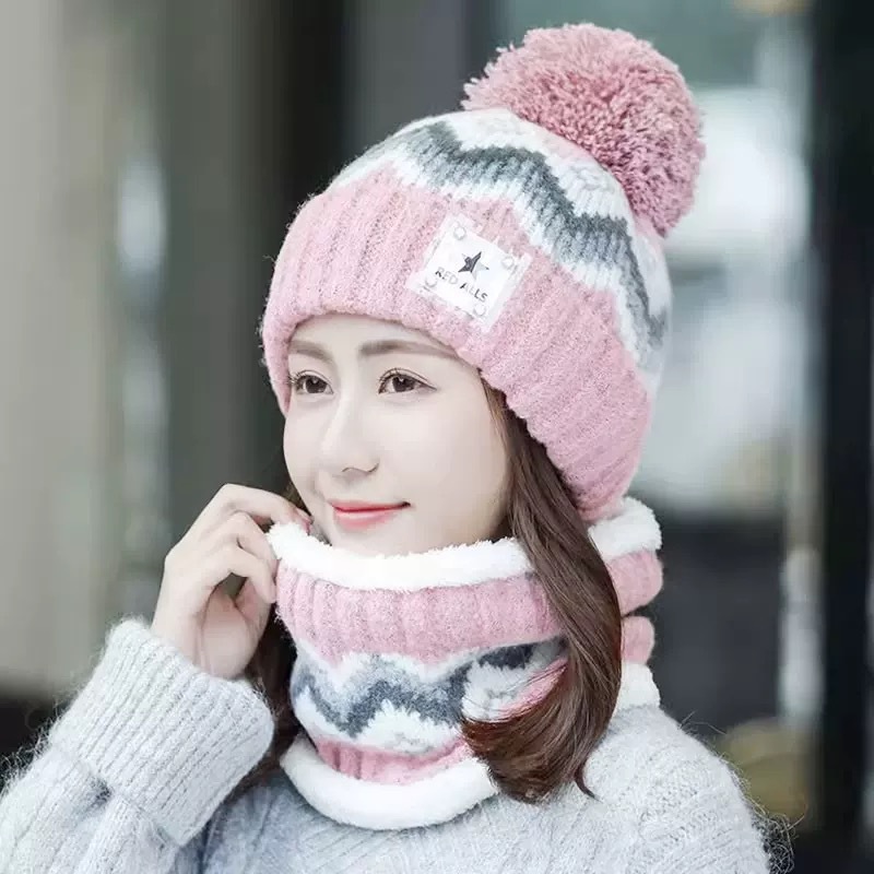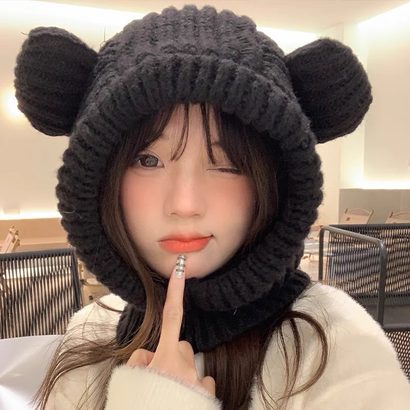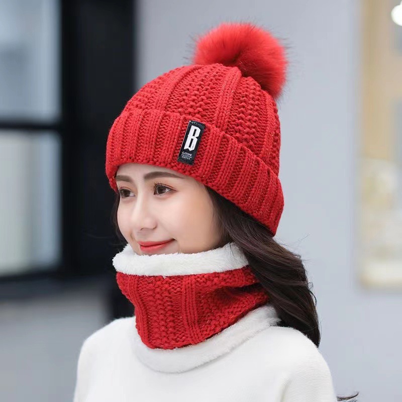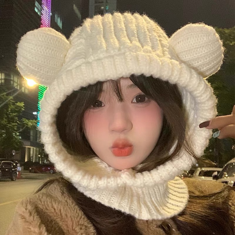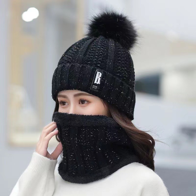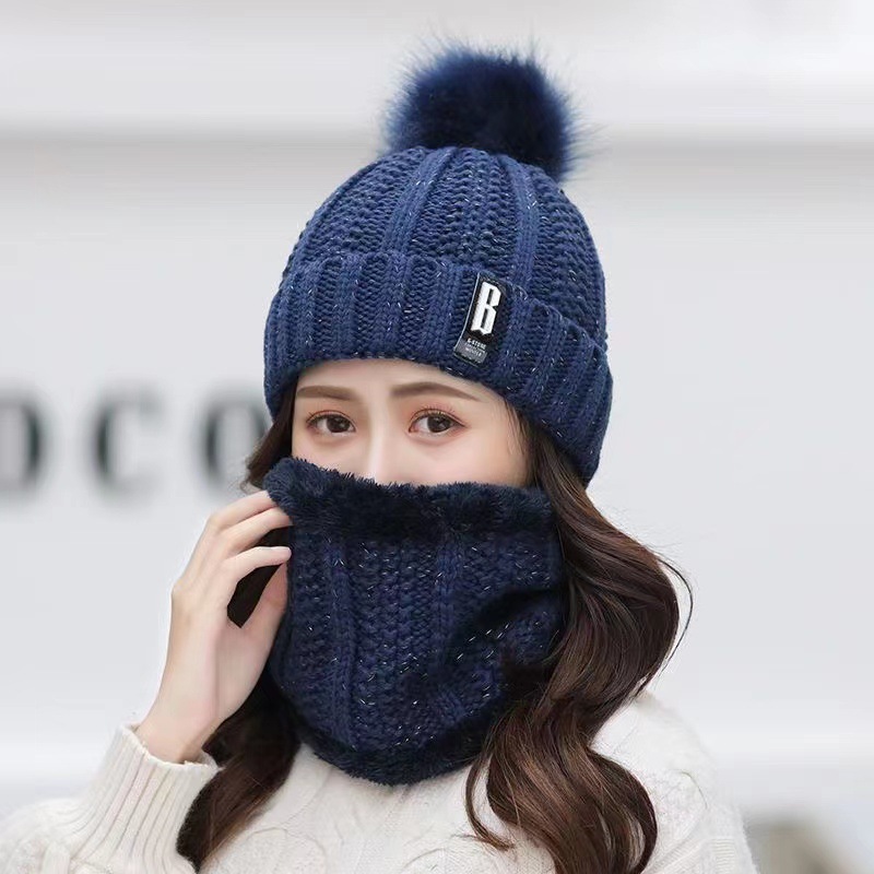 New autumn and winter women's wool ball and velvet warm pullover hat for students, cute outdoor cold proof fashionable knitted wool hat