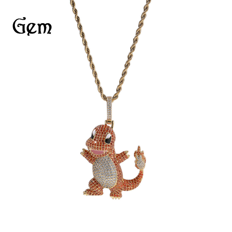 Gu Meng Neuer Cartoon-Anhänger mit kleinem Feuerdrachen, Kupfer, Mikroeinlage, bunter Zirkonstein, vielseitiger, personalisierter Pullover